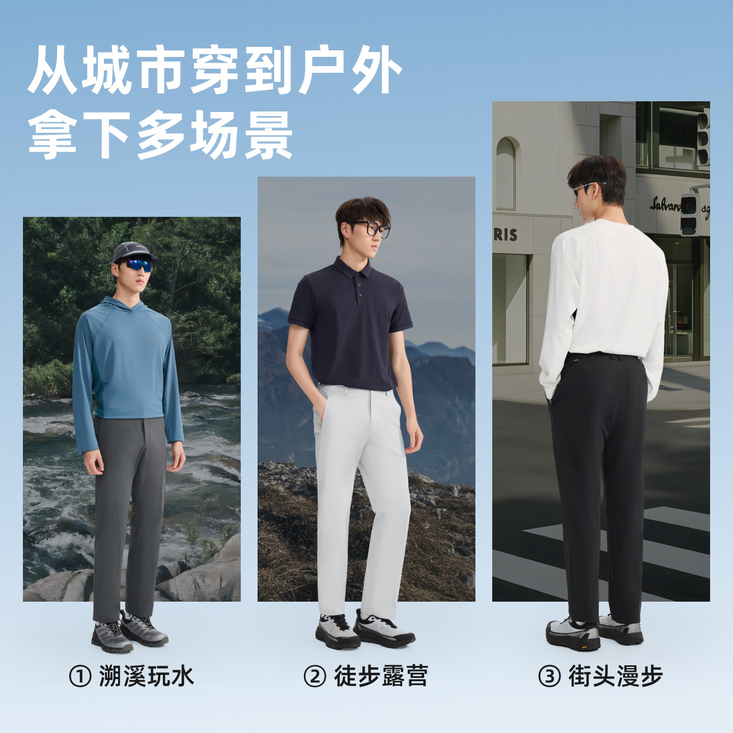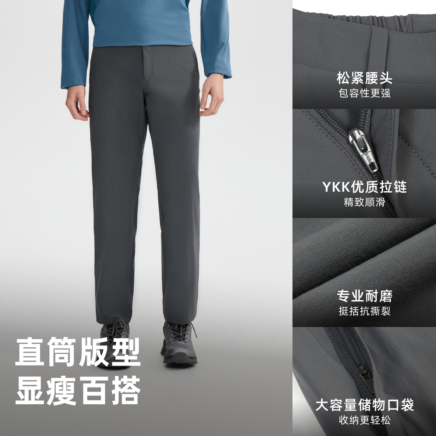蕉下男士直筒软壳裤户外休闲裤子动态腰头防泼水登山徒步加绒保暖
