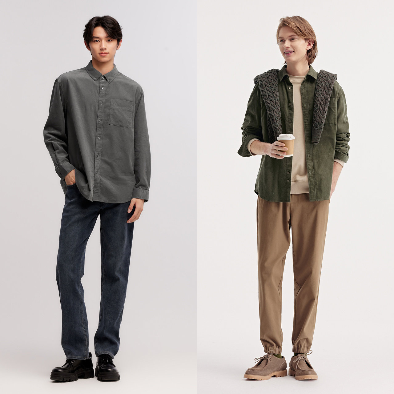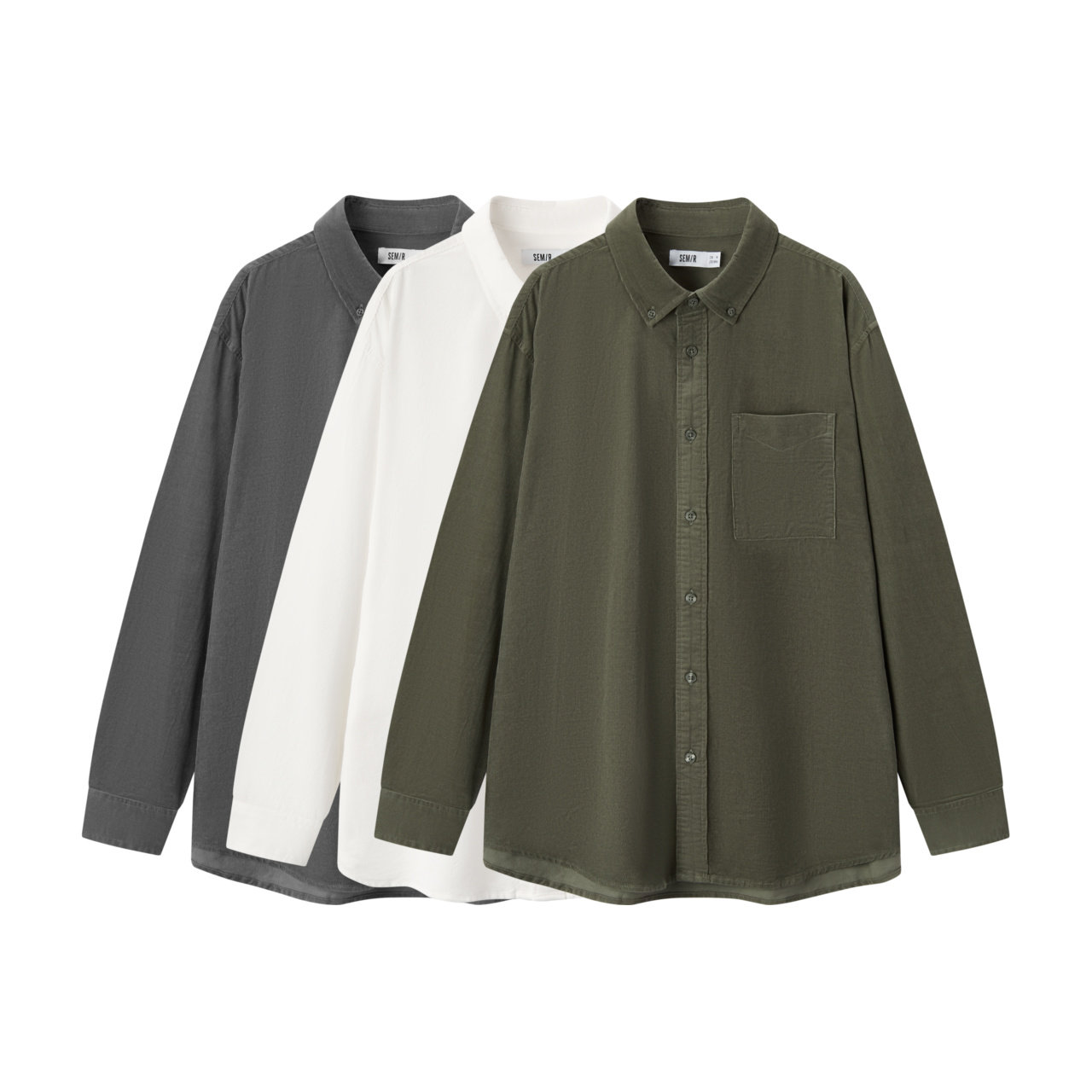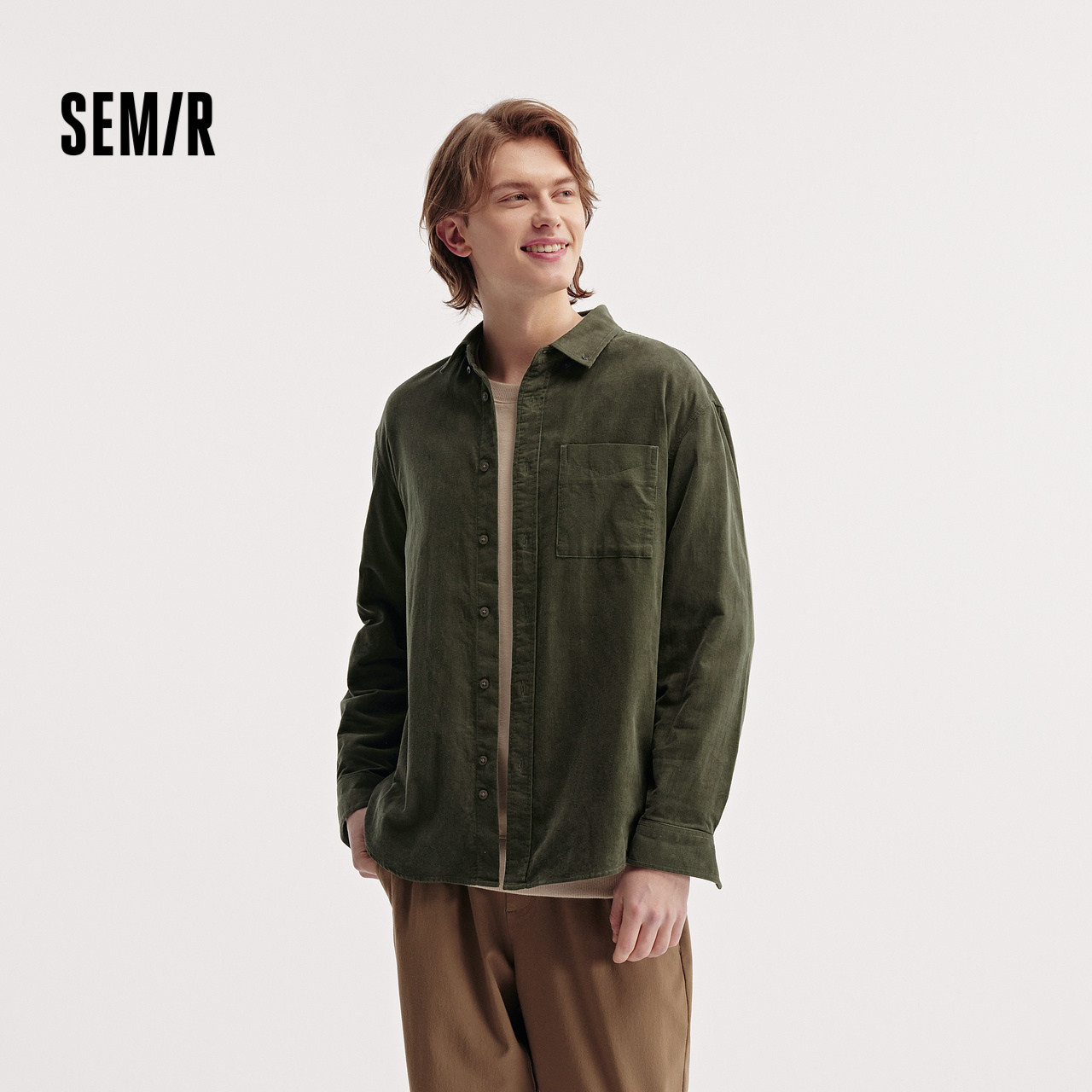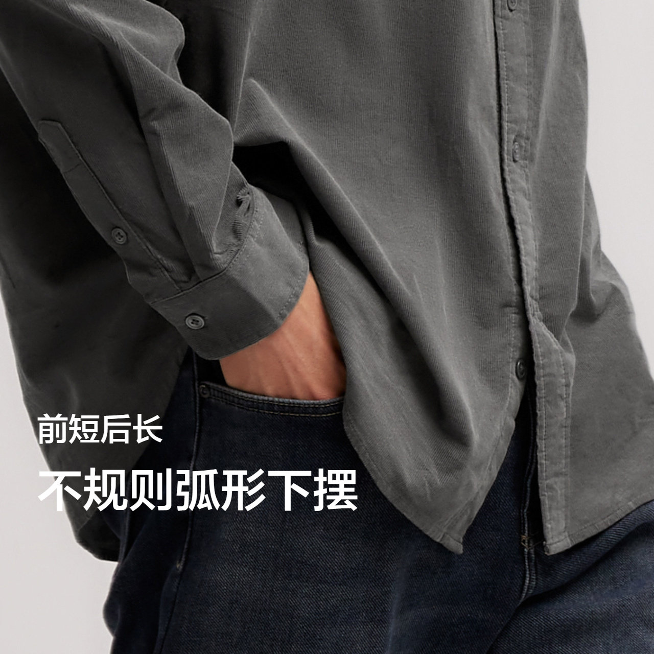 [商场同款]森马长袖衬衫男纯棉灯芯绒2024冬新款纯色衬衣情侣百搭