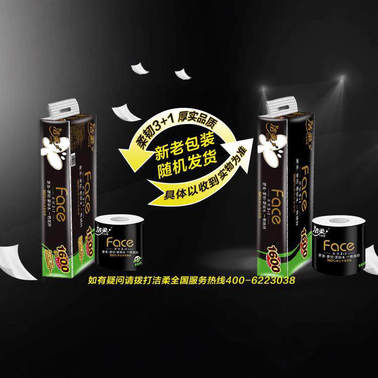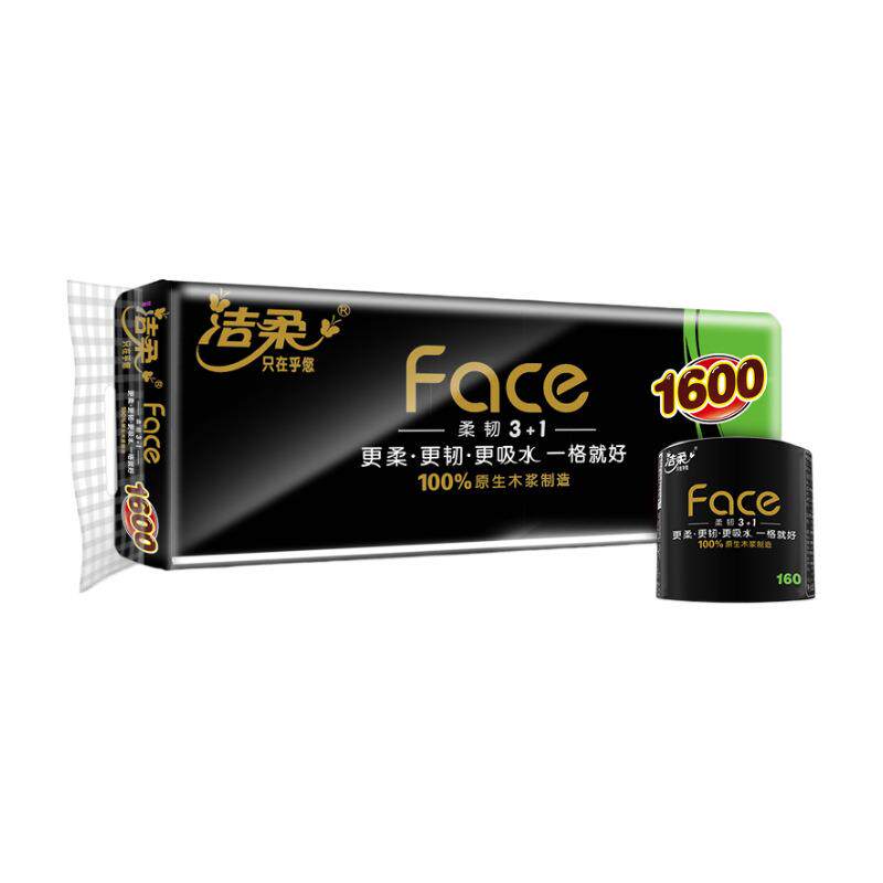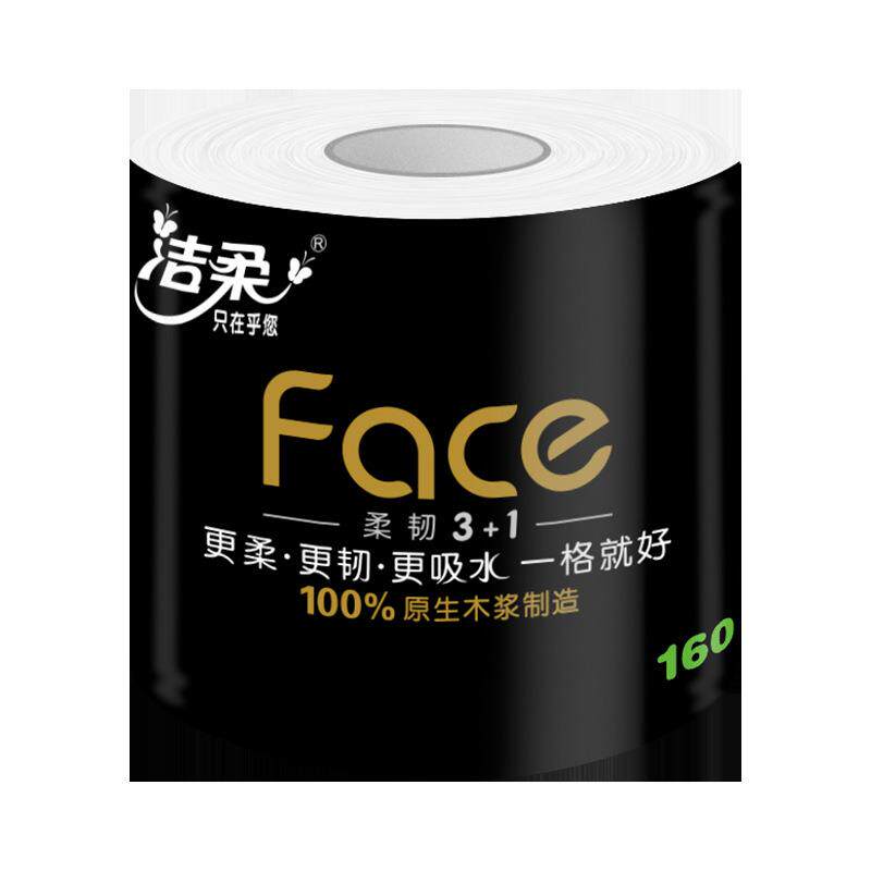 拉车套罩洁柔卷纸160克卫生纸Face黑有芯4层卷筒纸提装大卷大量家用装
