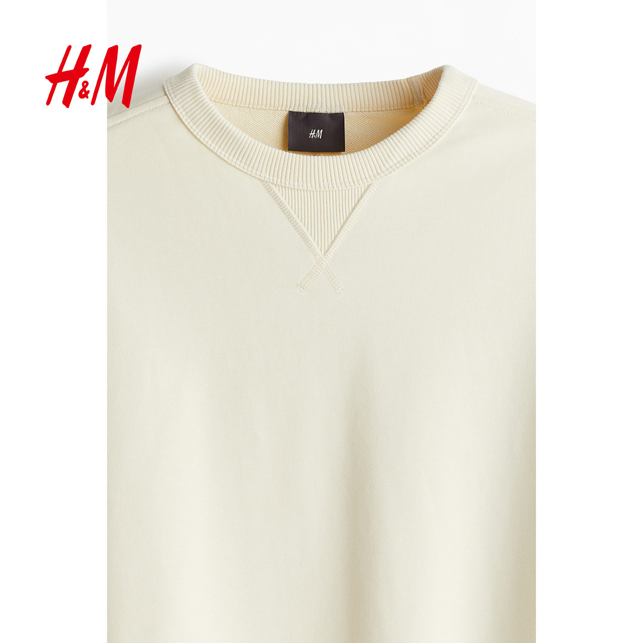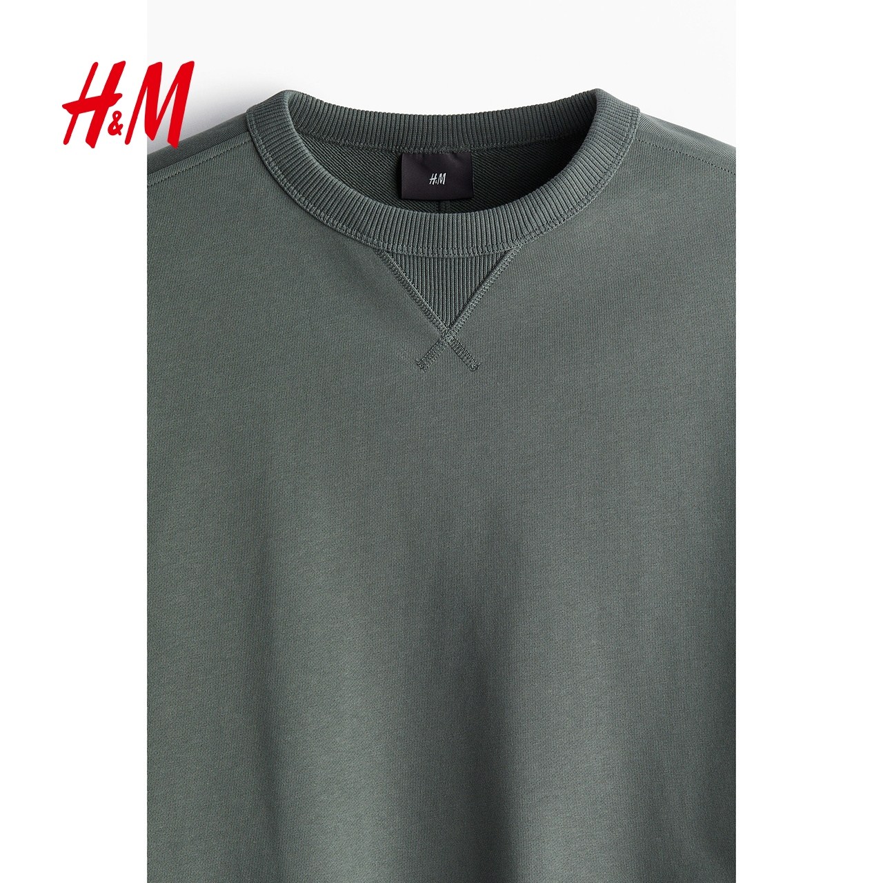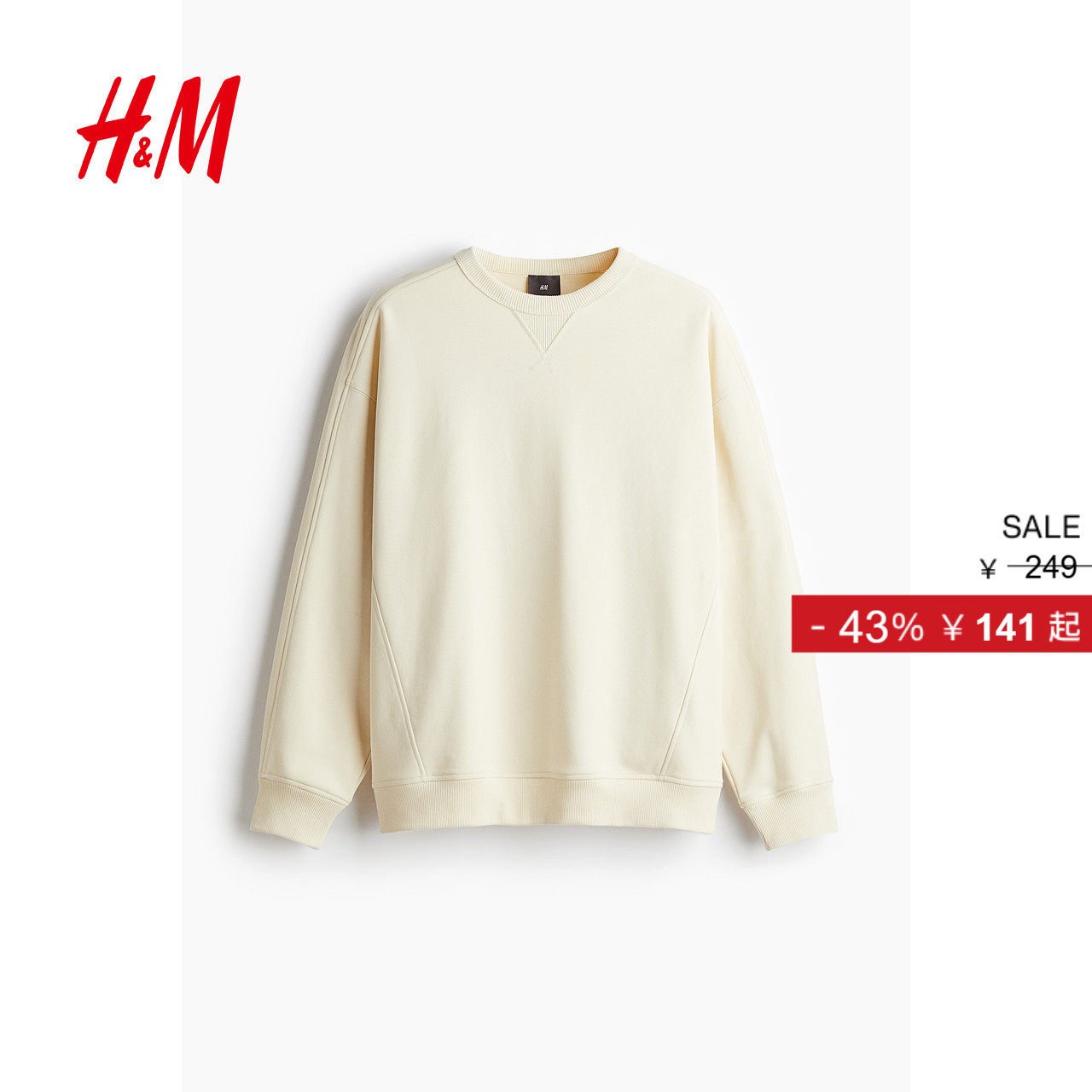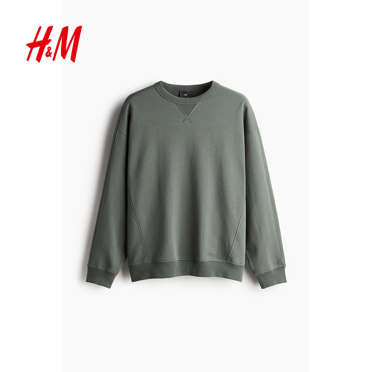 HM男装女装卫衣冬季重磅宽松圆领套头情侣落肩袖宽松卫衣1235553