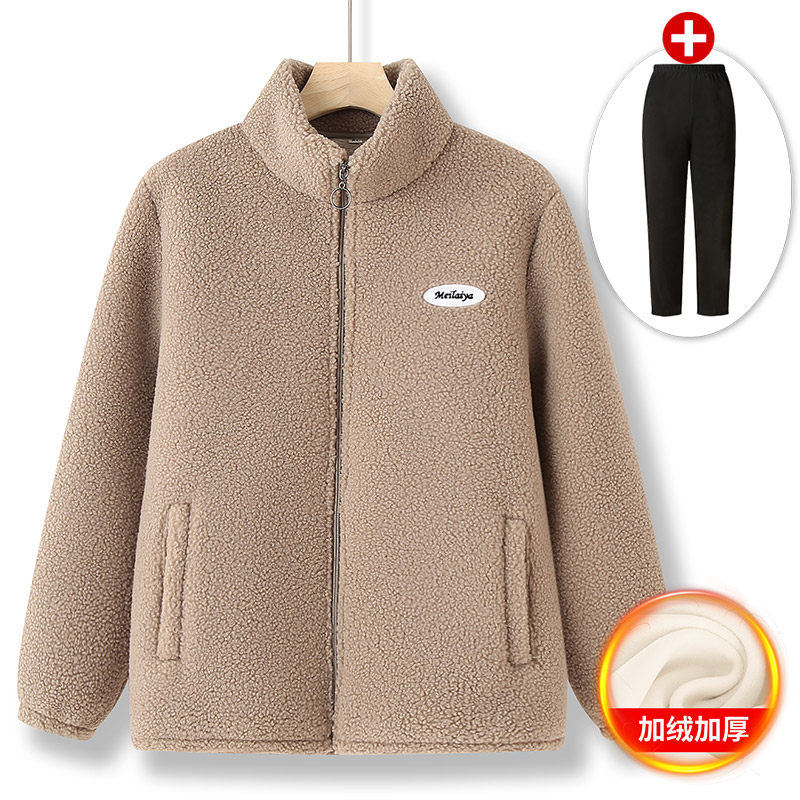 奶奶秋冬装摇粒绒外套中老年人女装加绒加厚上衣保暖衣妈妈装衣服