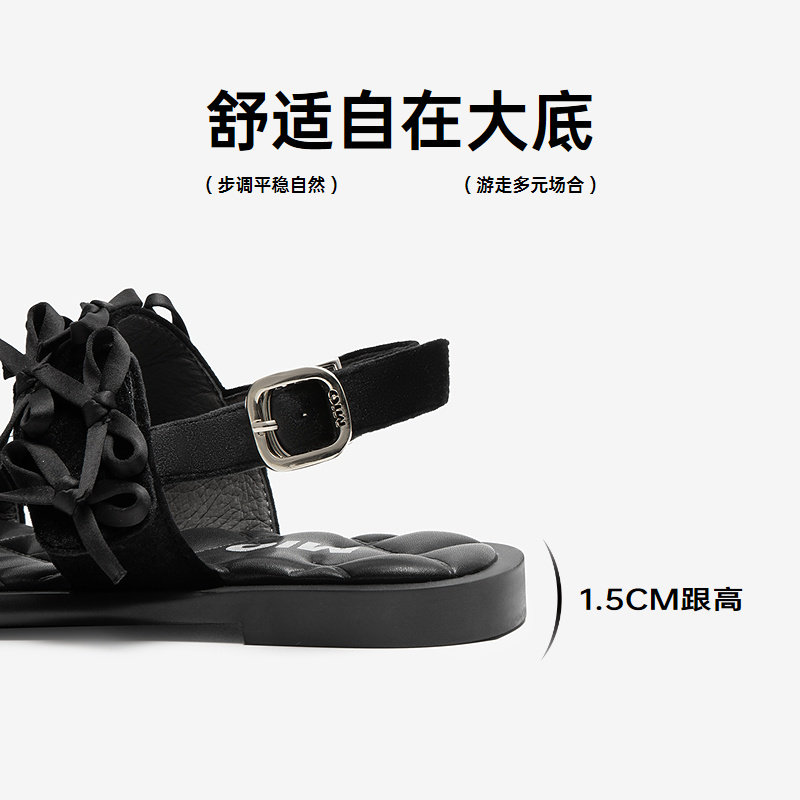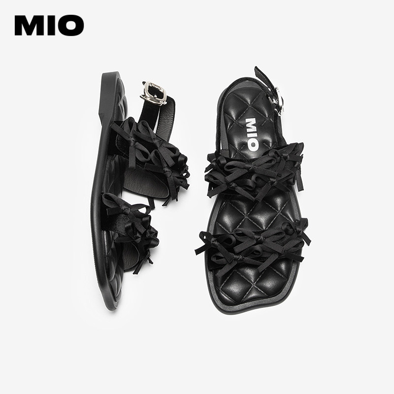 MIO米奥蝴蝶结凉鞋女2025夏季新款法式方头平底带扣清凉度假拖鞋