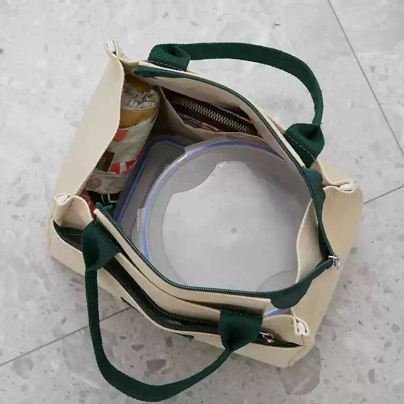 新款日式环保帆布手提包饭盒袋子上班族通勤带饭便当包手拎袋百搭