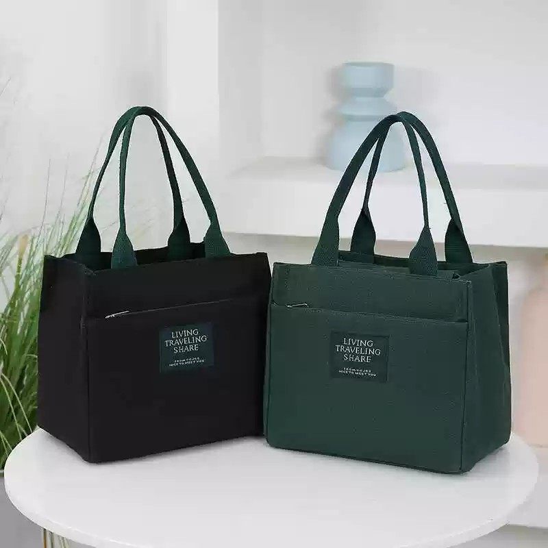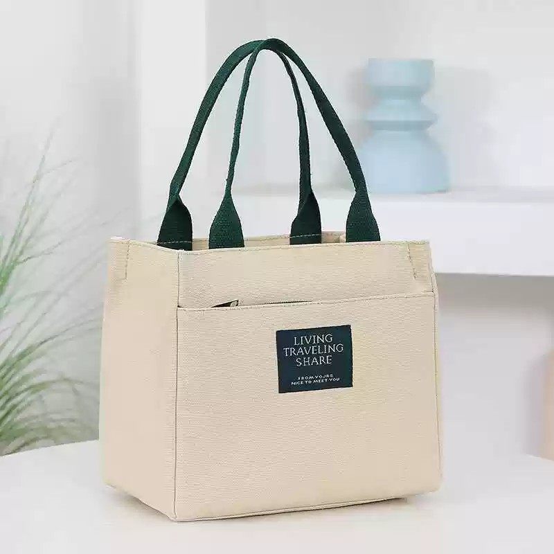 帆布手提包小巧百搭上班族便当包新款学生大容量饭盒袋简约手提袋