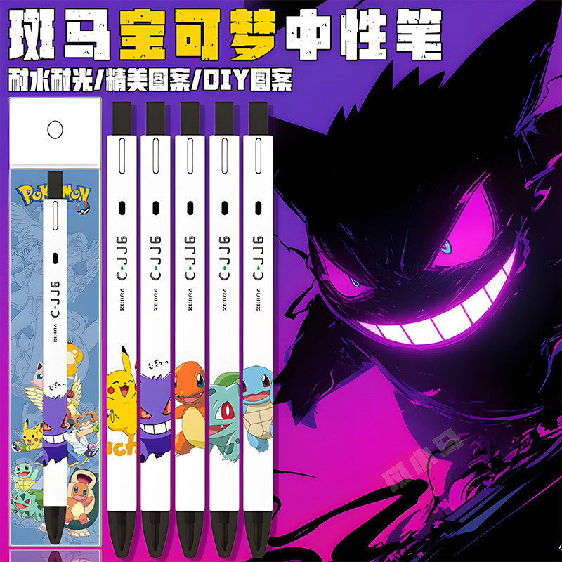 日本ZEBRA斑马宝可梦CJJ6DIY贴纸款耿鬼皮卡丘学生按动考试中性笔