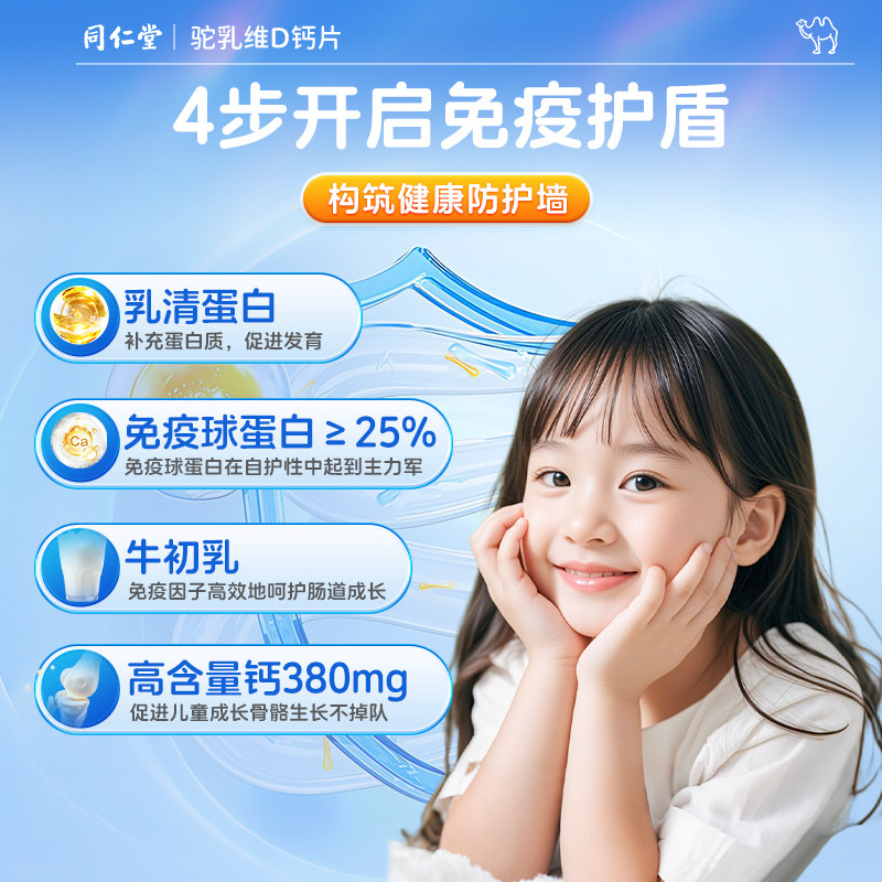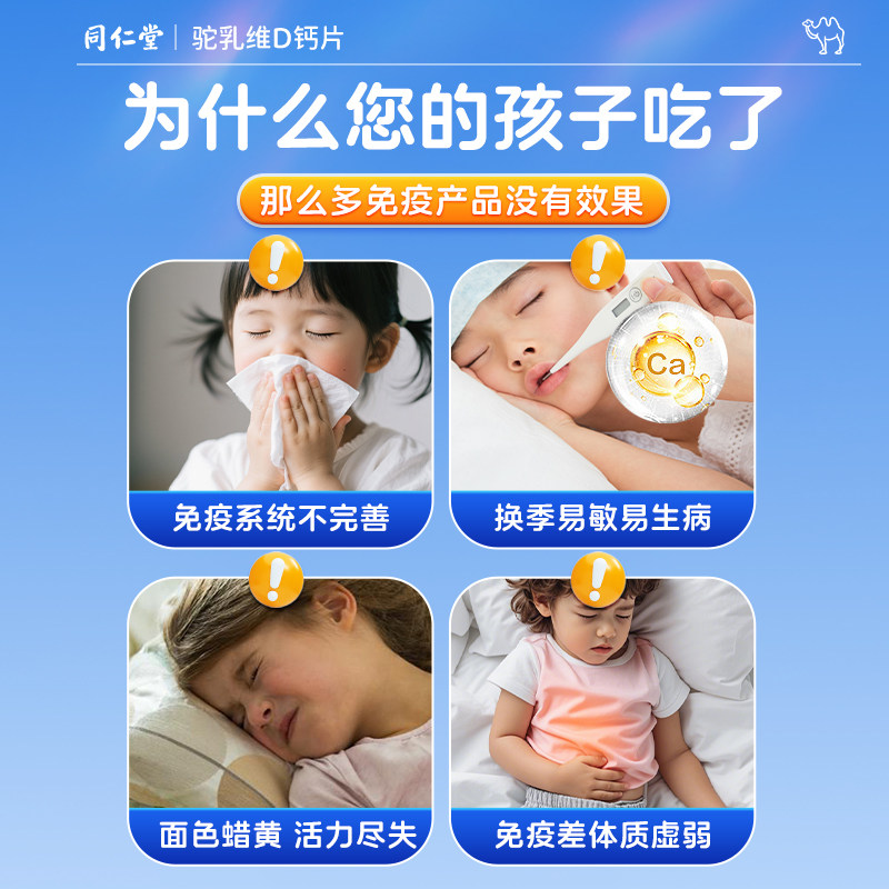 同仁堂驼奶钙铁锌青少年儿童非长高官方旗舰店正品提维生素D补钙