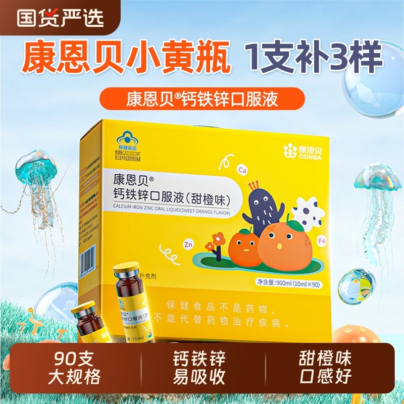 康恩贝儿童钙铁锌口服液90支青少年葡萄糖酸钙锌矿物质口溶液正品