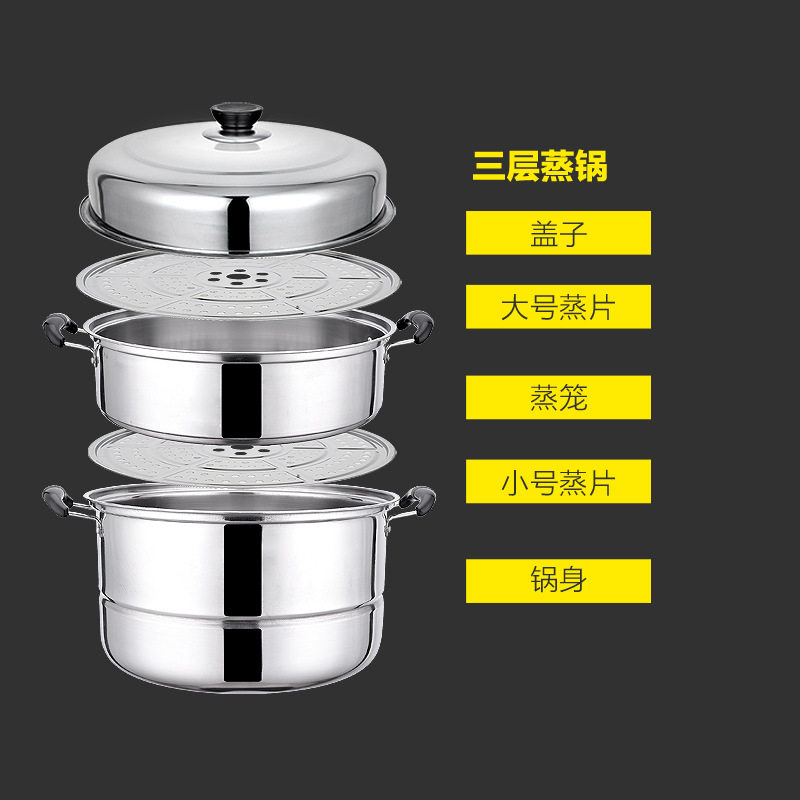 加厚不锈钢双层蒸锅家用二三层锅大号汤锅蒸馍蒸鱼锅电磁炉煤气灶