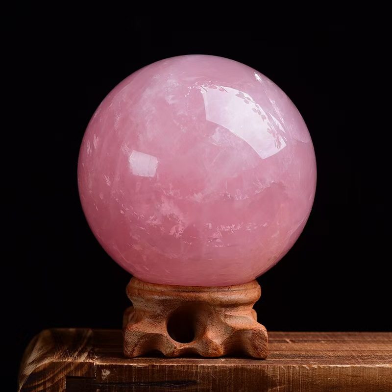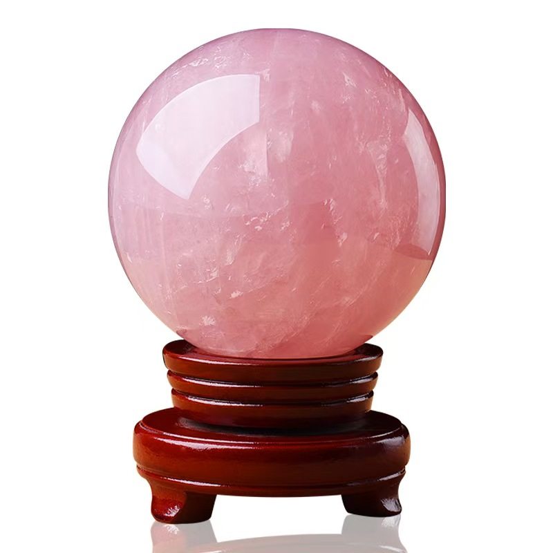 天然粉水晶球摆件招桃花女房间床头柜粉晶单身卧室装饰品粉色