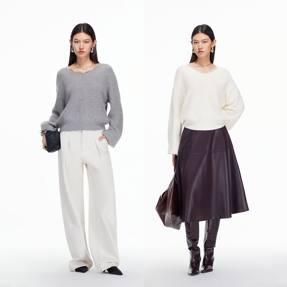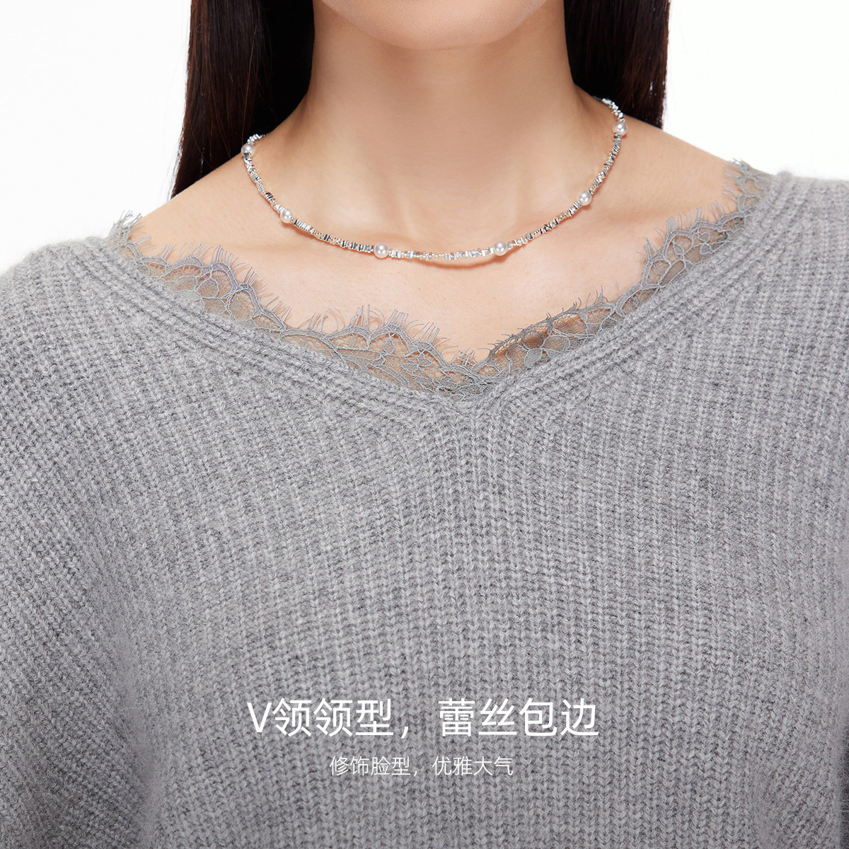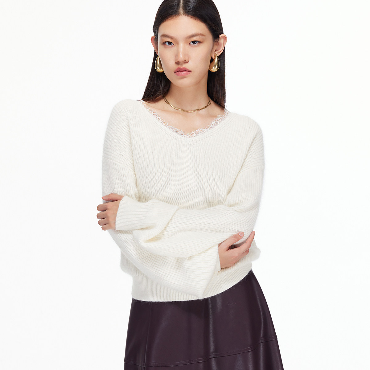Vero Moda针织衫2025冬季新款含兔毛绵羊毛蕾丝V领上衣325413041