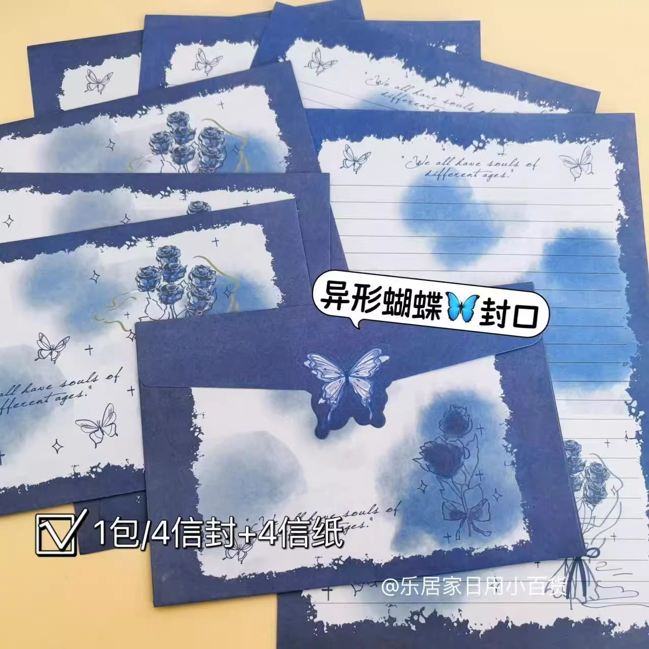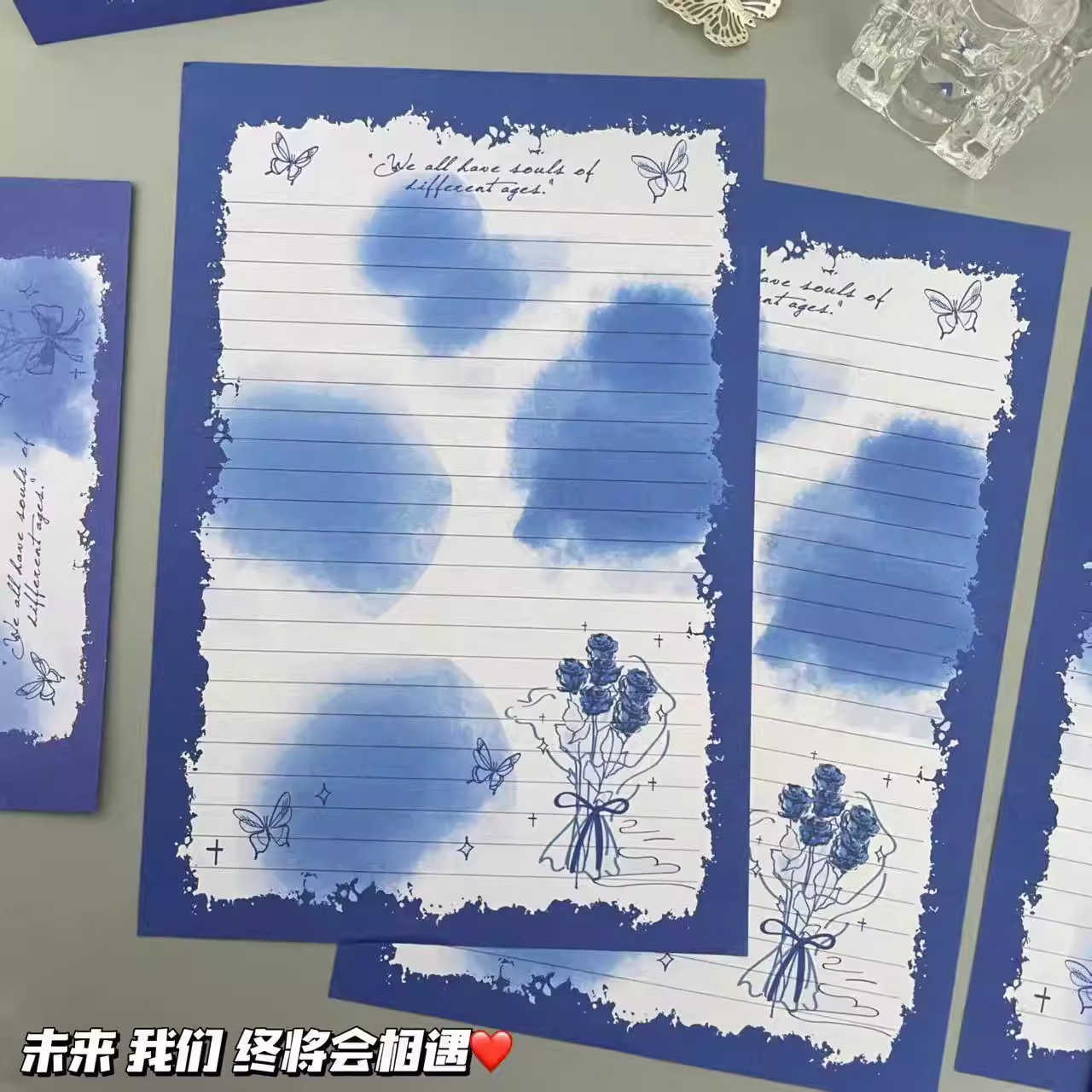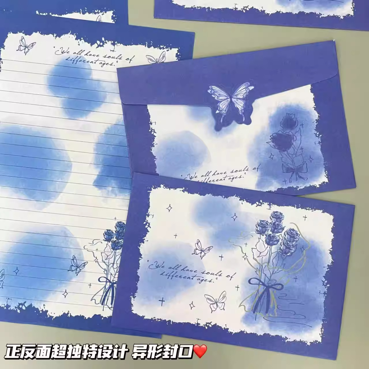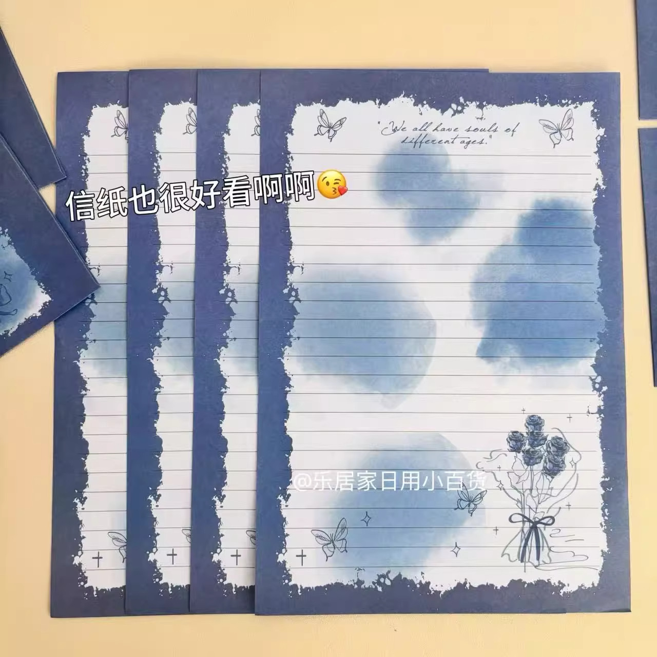 蓝色系浪漫蓝玫瑰情书信封信纸套装梦幻手写七夕情人节表白