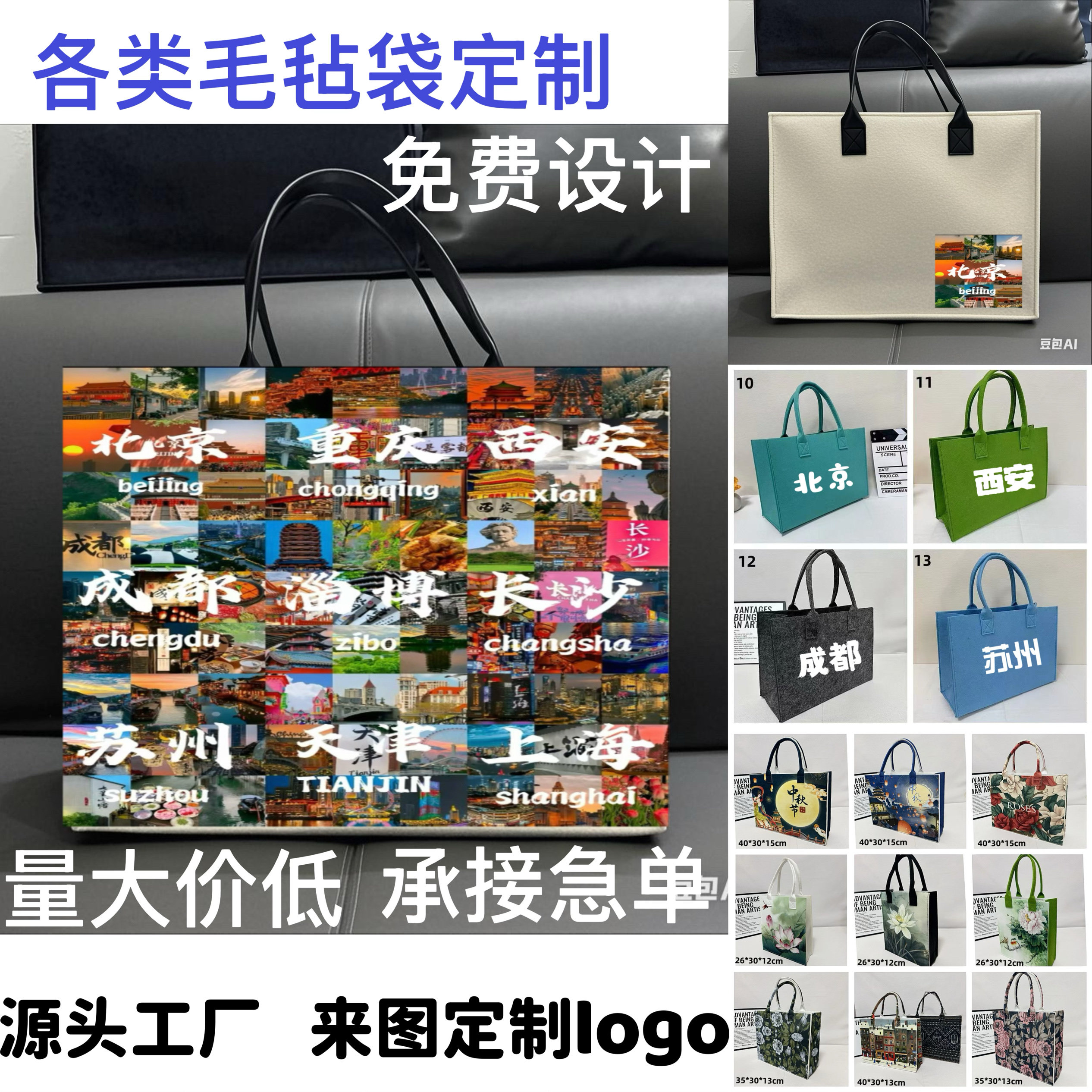 新款毛毡包青年休闲毛毡手提包2025新款简约字母百搭时尚手提袋女