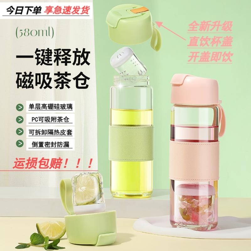 2025新款磁弹泡茶杯茶水分离玻璃水杯便携磁吸花茶杯子茶仓保温