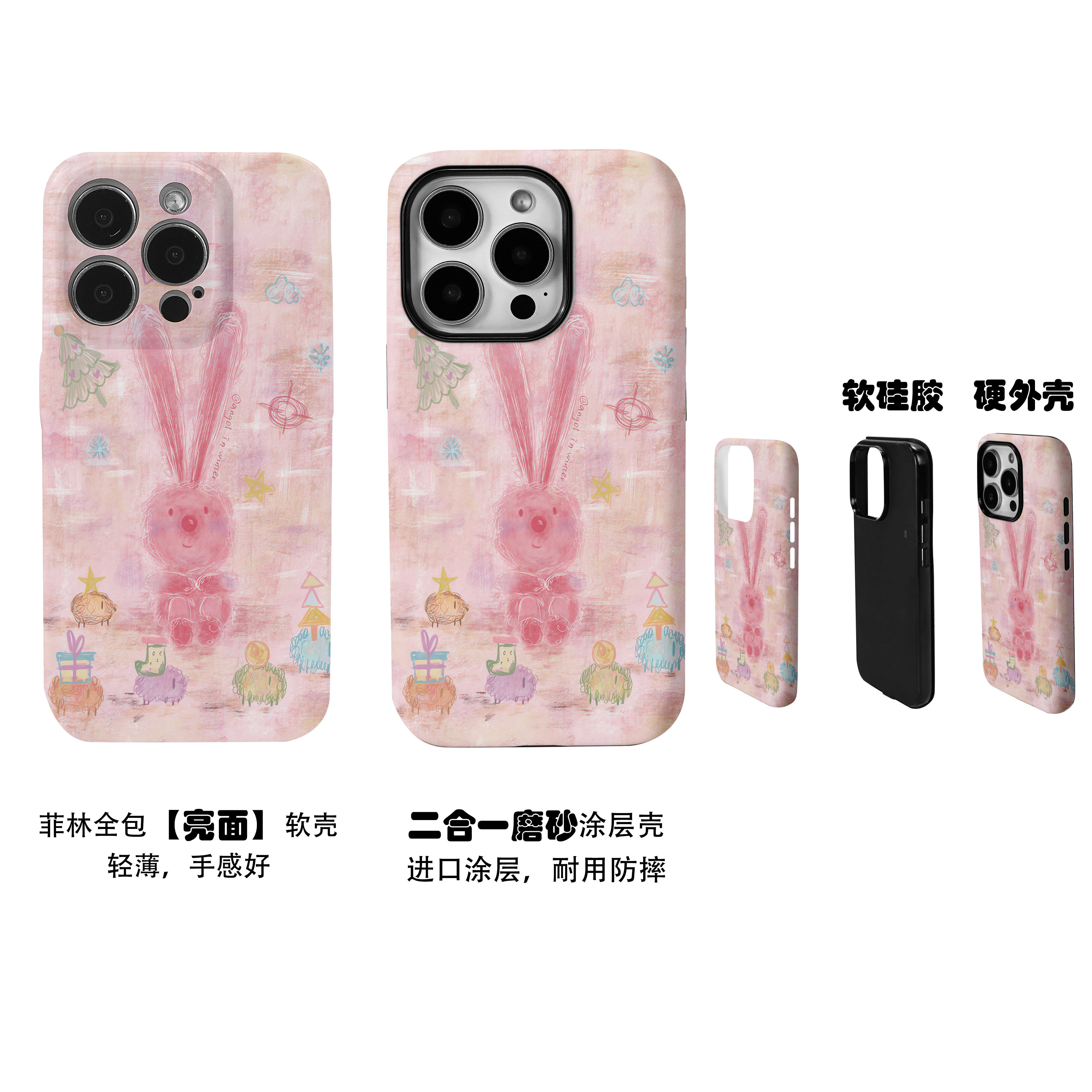 可爱梦幻粉色复古兔兔二合一手机壳适用苹果16nova13华为p70mate60小米15opporen13ovivo荣耀300iPhone15