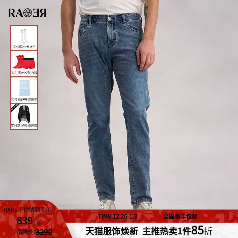 RARE威雅男裤春夏新款男士薄款裤子 修身蓝色水洗牛仔裤