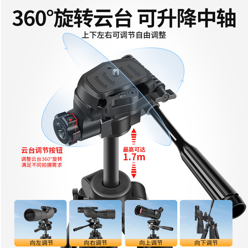 望远镜专用支架单筒双筒通用三脚架高度可调360°旋转多功能三角支架1.7米1.8米1.4米