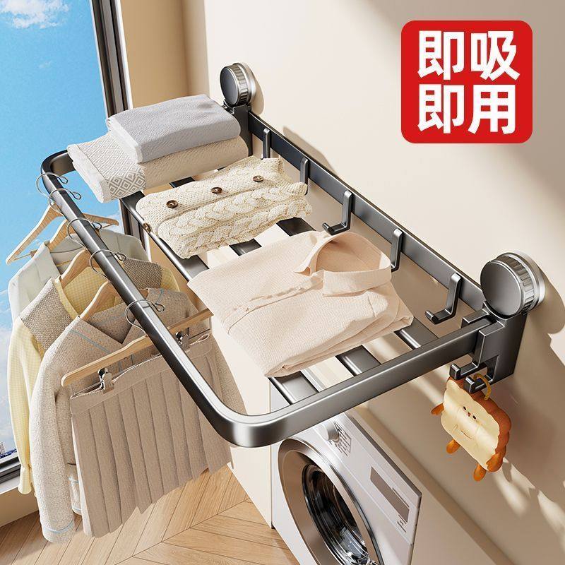 吸盘毛巾架卫生间免打孔挂杆浴室置物架一体淋浴房浴巾架马桶墙面