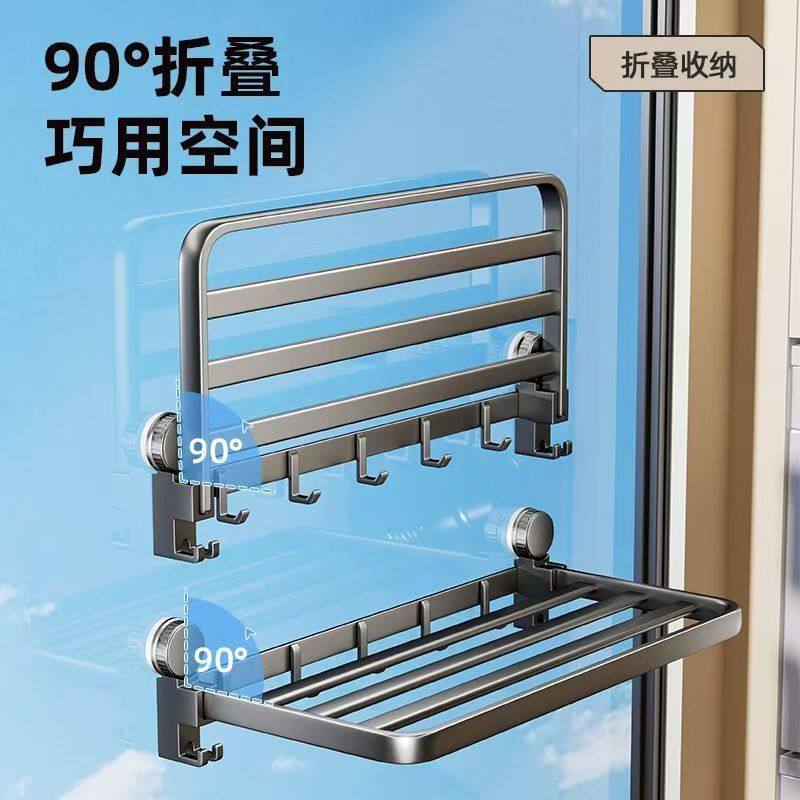 【谢霆锋推荐】佳帮手毛巾架免打孔浴室卫生间置物架一体折叠套装