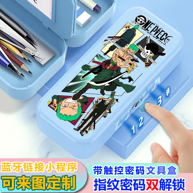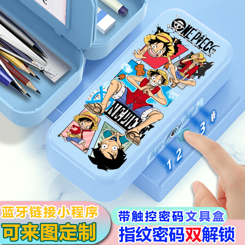 海贼王路飞文具盒指纹触控密码解锁铅笔盒男孩帅气黑科技笔盒新款
