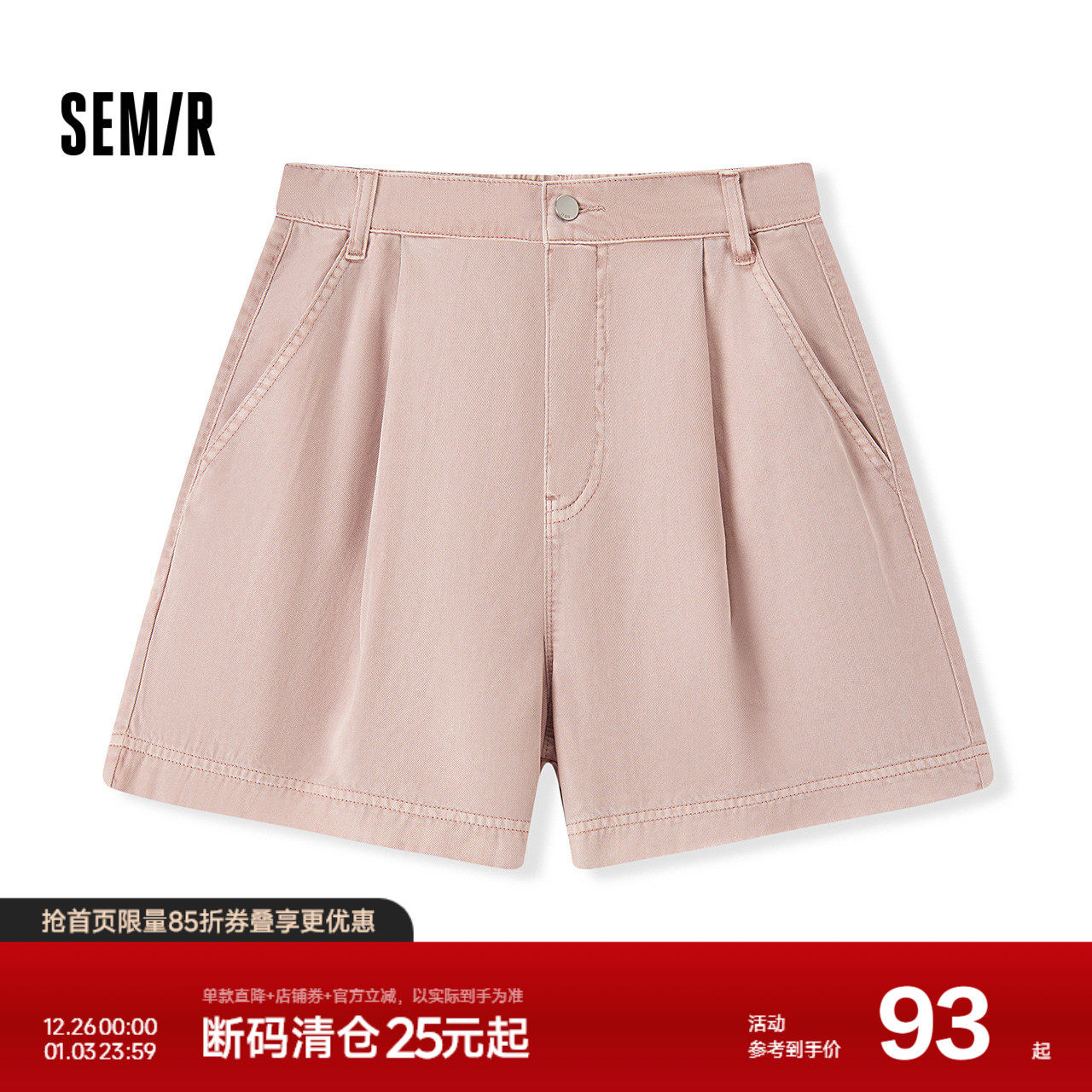 森柔牛仔|森马牛仔裤女凉感时尚半松紧腰直筒裤夏宽松A字短裤甜酷