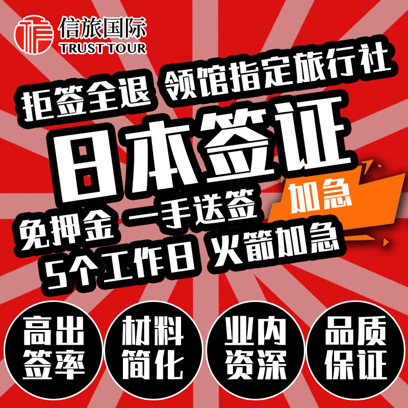 日本·三年多次旅游签证·上海送签·中信信旅日本签证三年多次个人旅游签证上海送签材料简化加急拒签全退