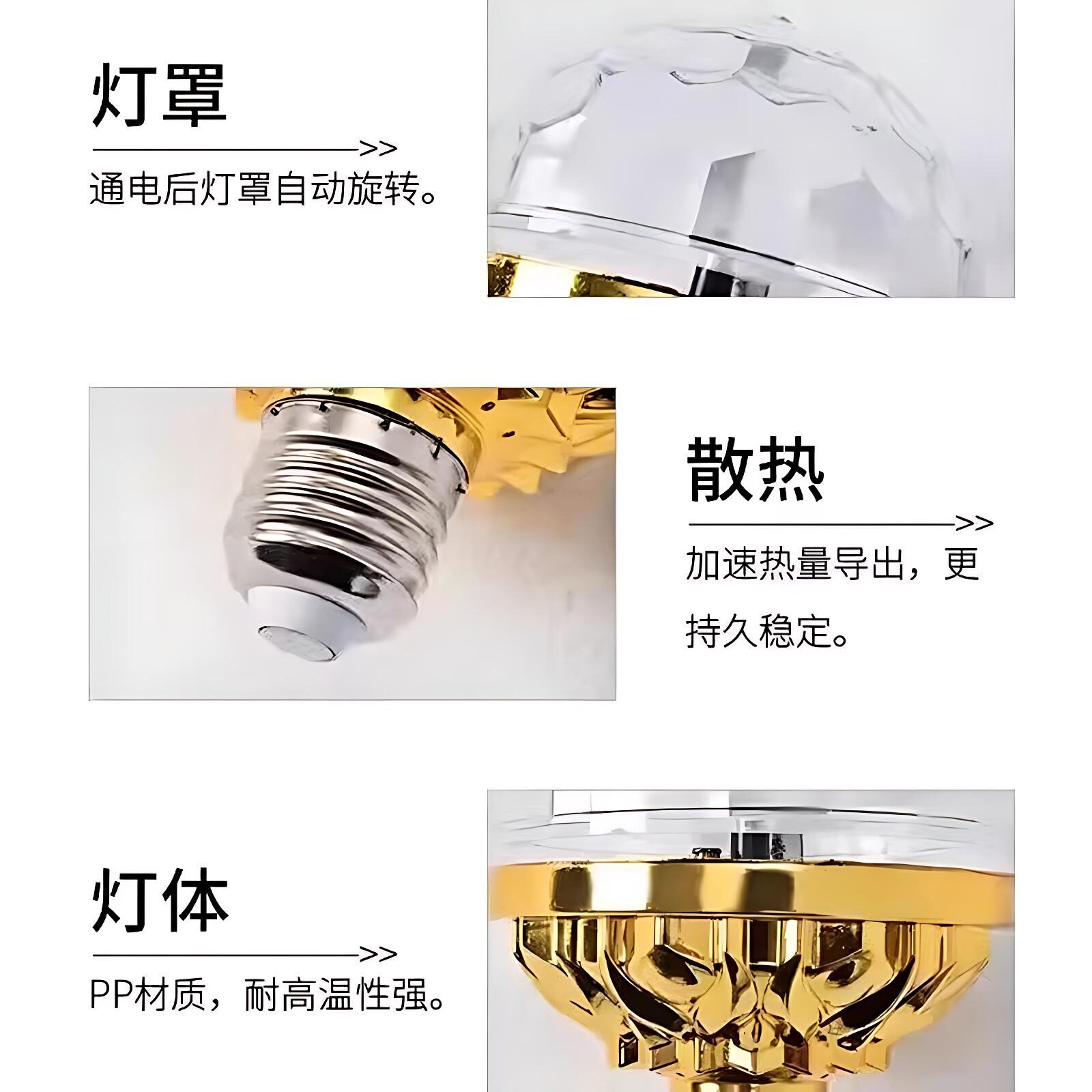 KTV旋转彩灯舞台灯氛围灯家庭跳舞蹦迪家用喜庆七彩水晶魔球灯泡