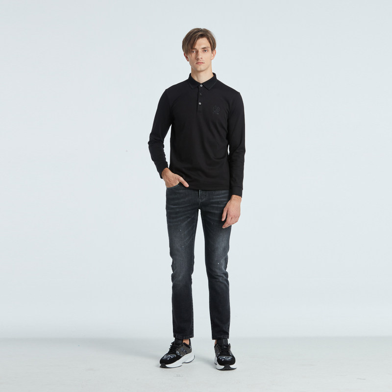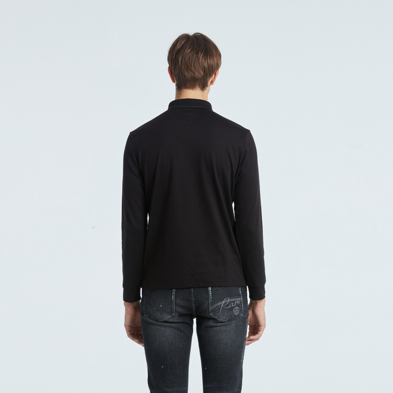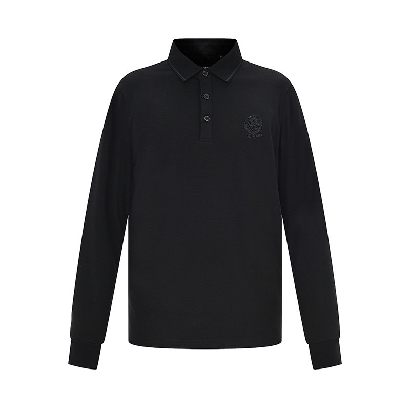 RARE威雅男装 秋冬新款黑色潮流翻领简约修身男士长袖T恤