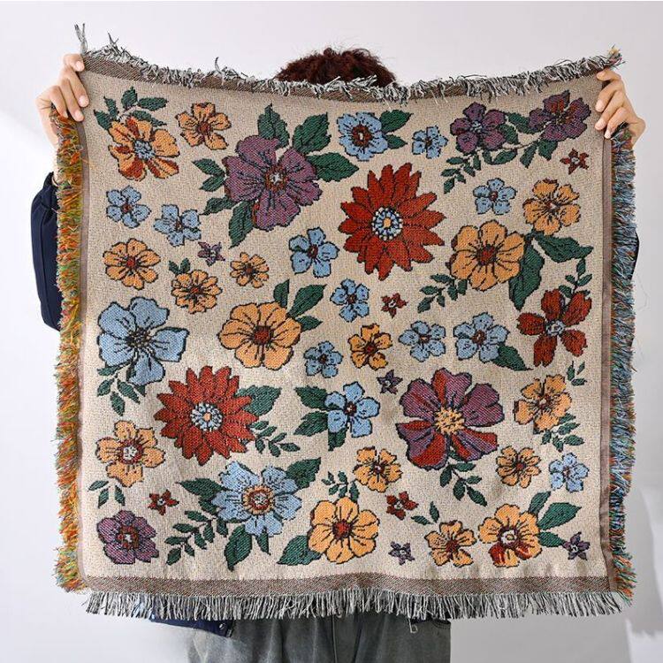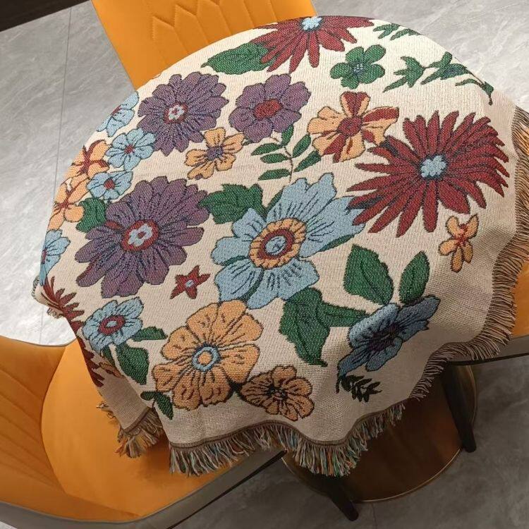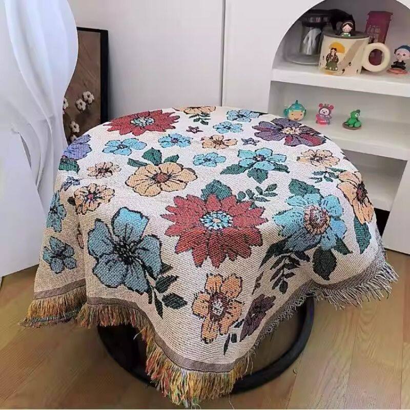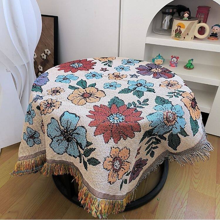 ins桌布茶几圆桌方桌野餐桌高级盖巾台布花满园流速线毯盖布