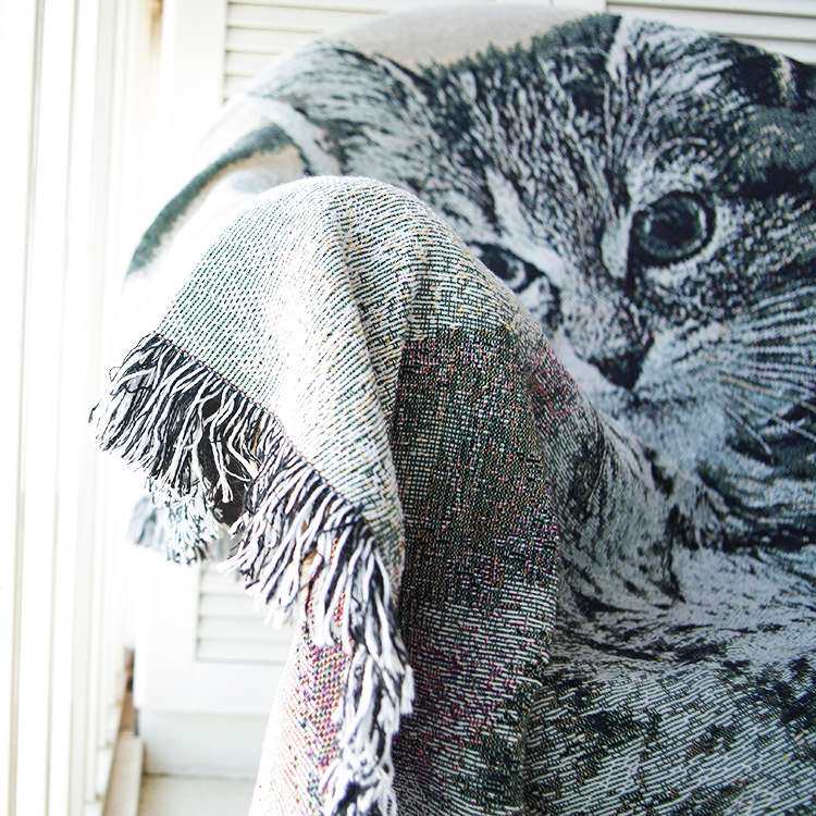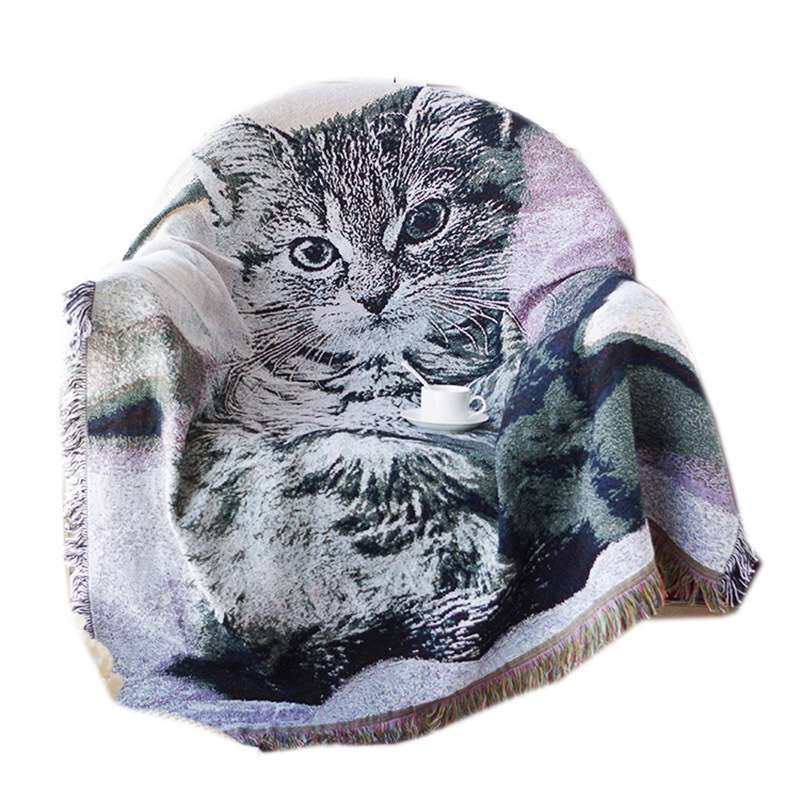 可爱呆萌猫咪单人沙发套沙发巾全盖装饰毯子黑白风线毯休闲搭毯