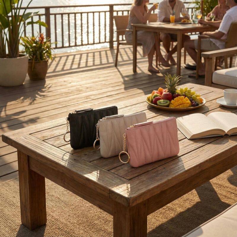 日系可爱零钱包简约华夫格收纳包女便携手腕包花朵mini小巧手提包