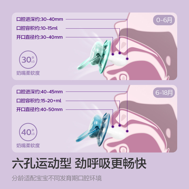 飞利浦soothie安抚奶嘴0到3到6个月新生婴儿母乳防胀气新安怡宝宝