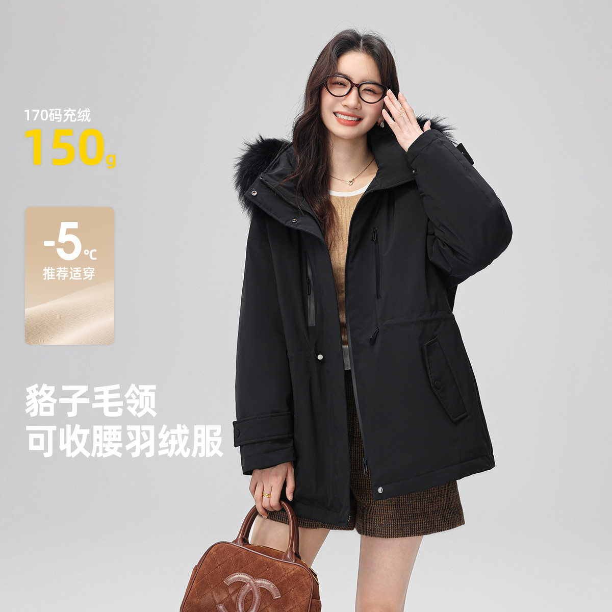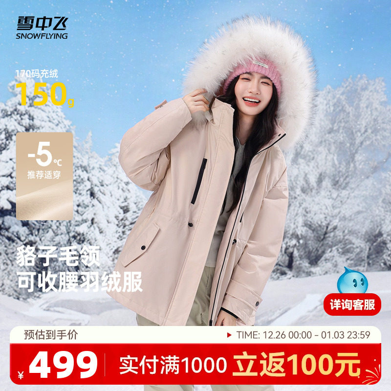 雪中飞25冬新品女中长羽绒服工装派克时尚貉子毛领收腰气质巴恩风