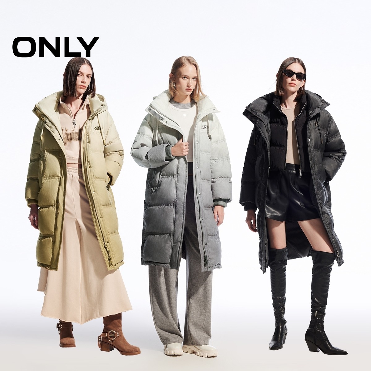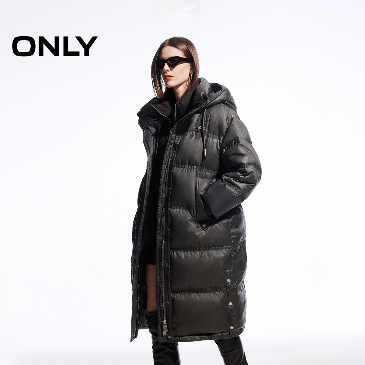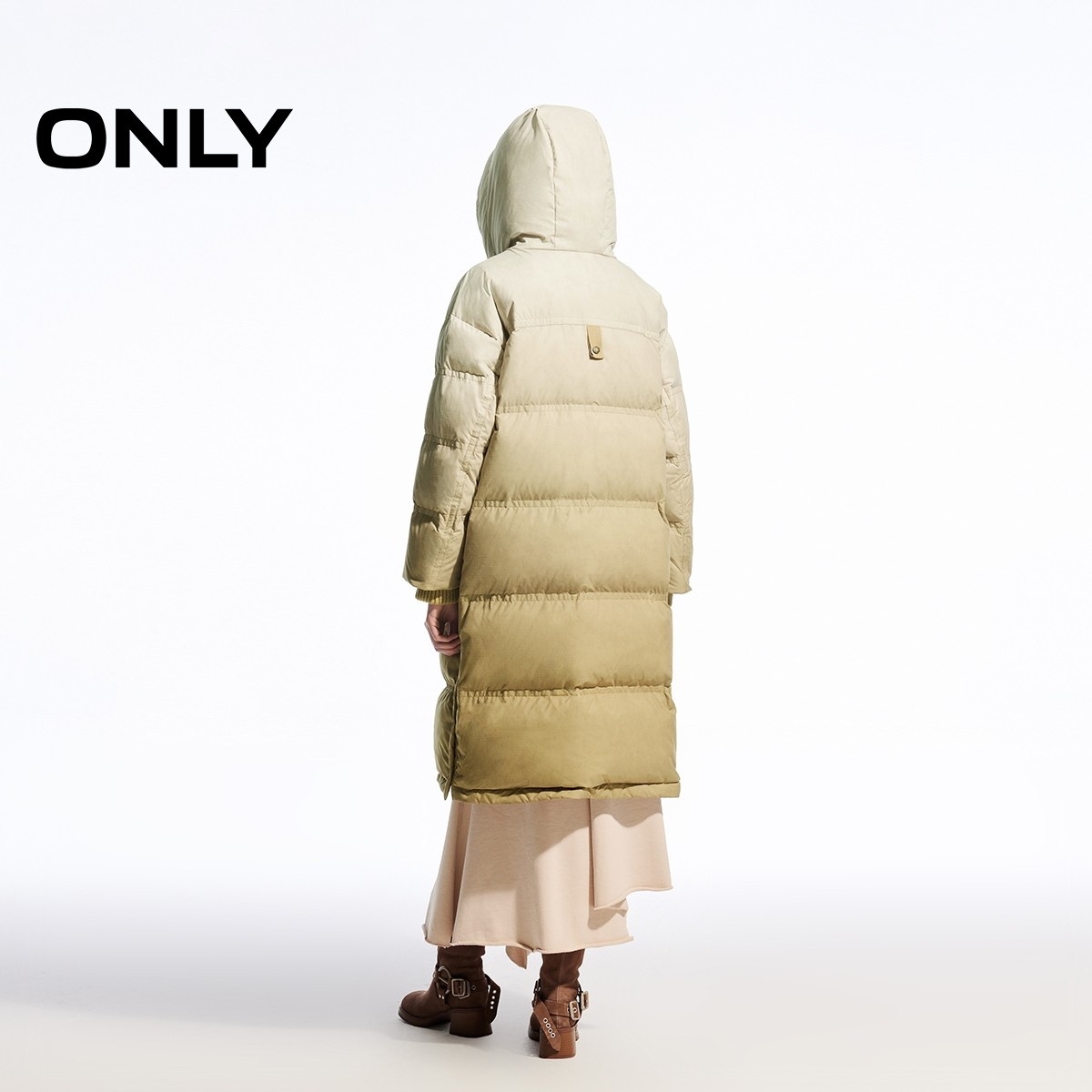 ONLY冬季90白鸭绒摩登复古重磅保暖渐变长款连帽羽绒服女