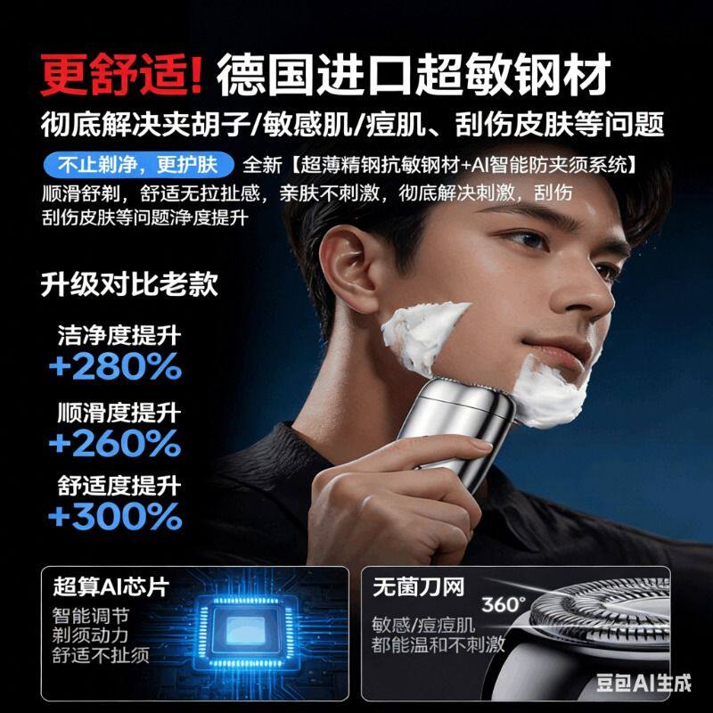 德国电动剃须刀男士2026新款刮胡刀迷你便携式须刨进口精钢胡须