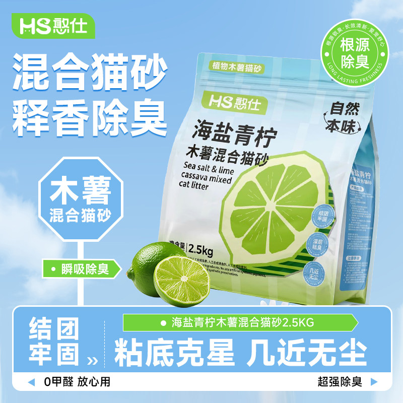 憨仕木薯猫砂海盐除臭混合豆腐近低尘不粘底植物砂幼猫膨润土