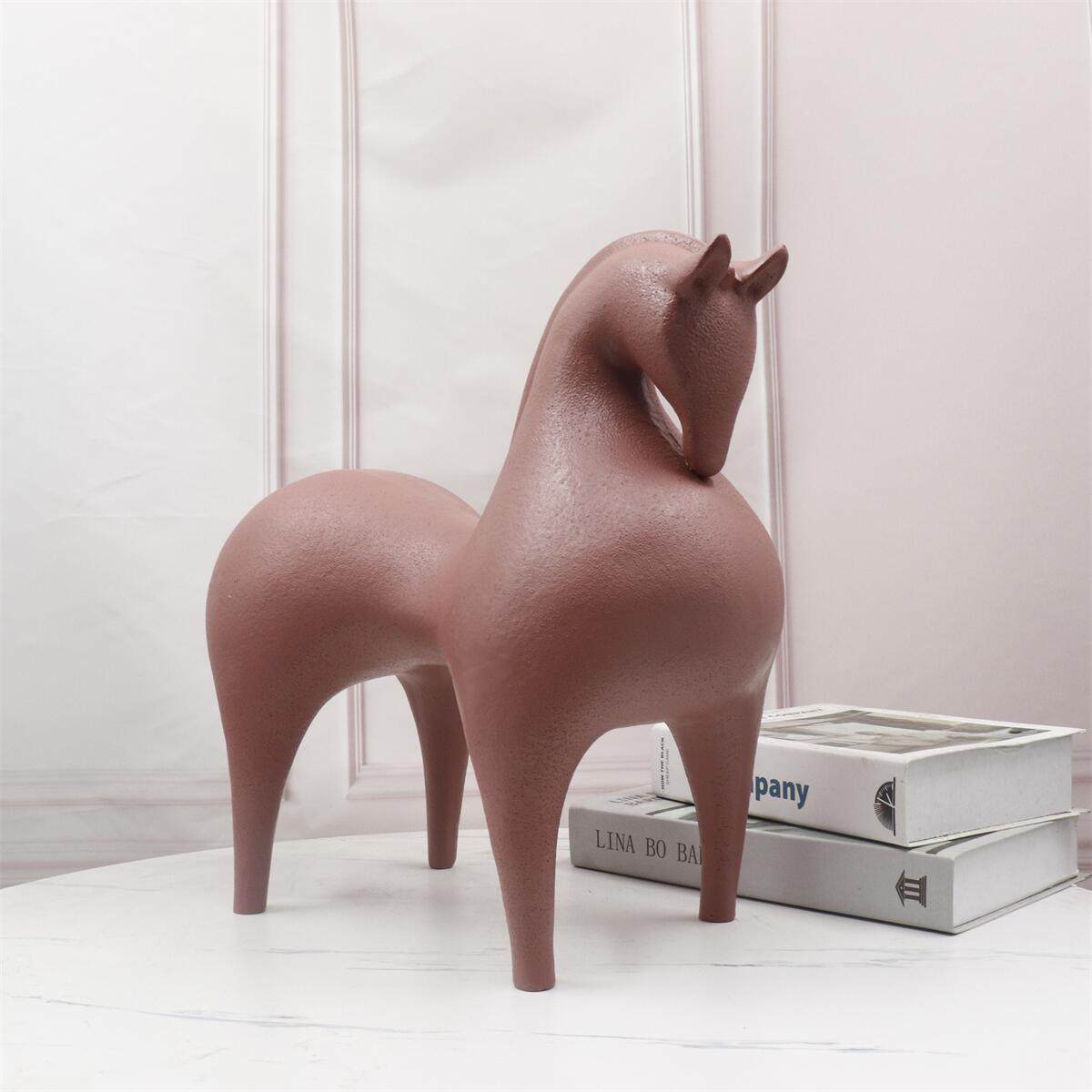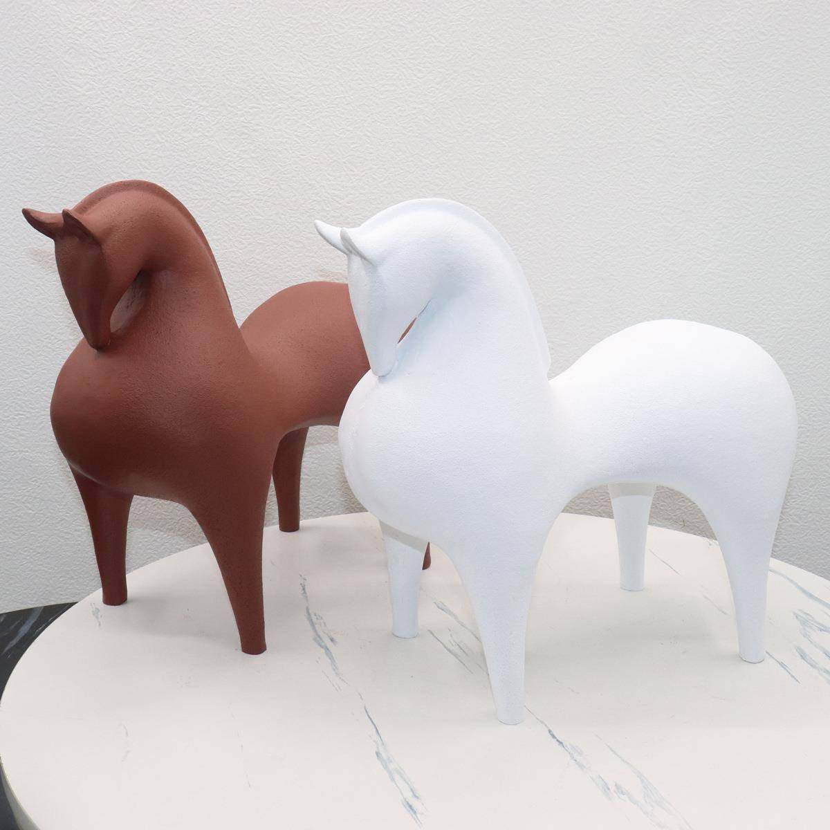 现代新中式唐马摆件红白色树脂客厅样板间办公室米兰时尚软装饰品