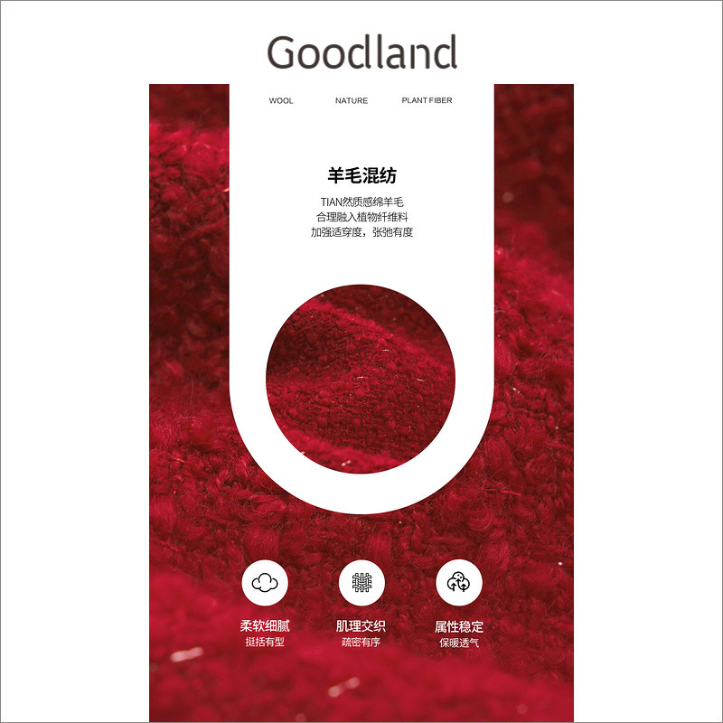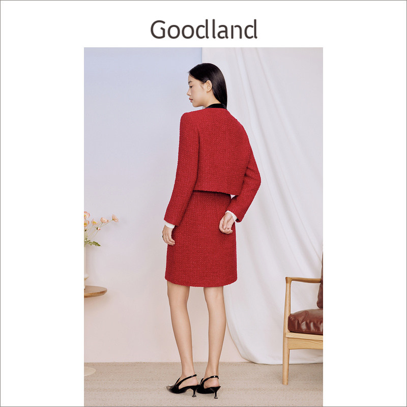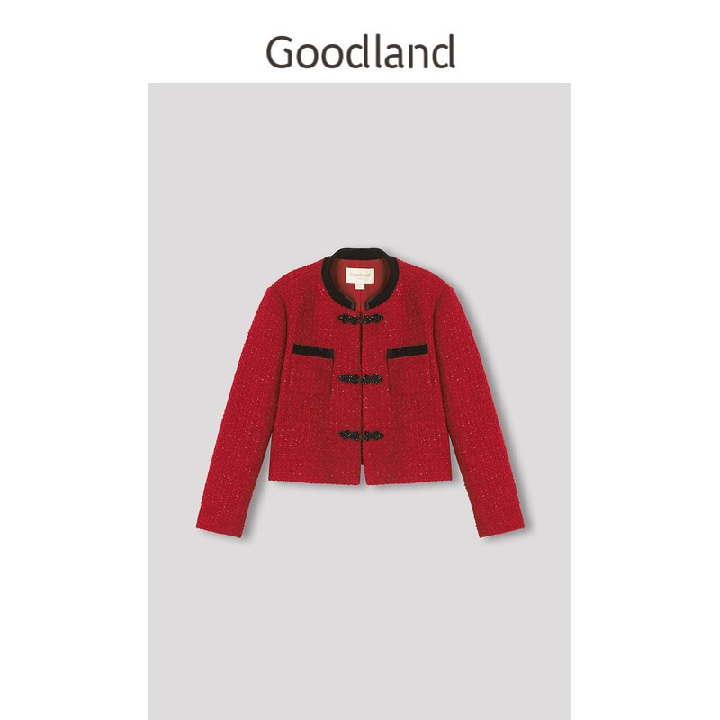 【中国红】Goodland美地女装冬季国风新中式粗花外套