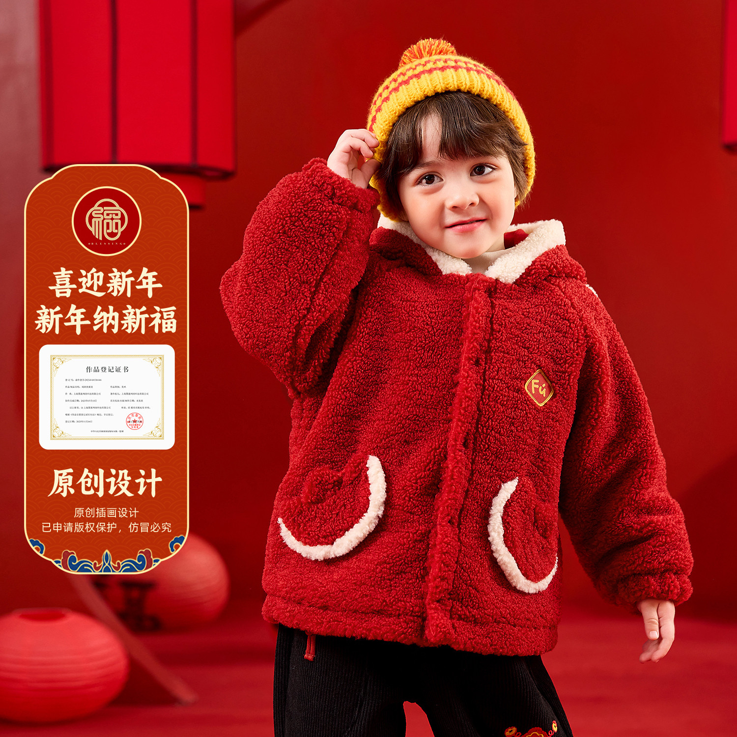 嘟嘟家儿童拜年服男童外套宝宝唐装红色新年国风喜庆中式女童汉服