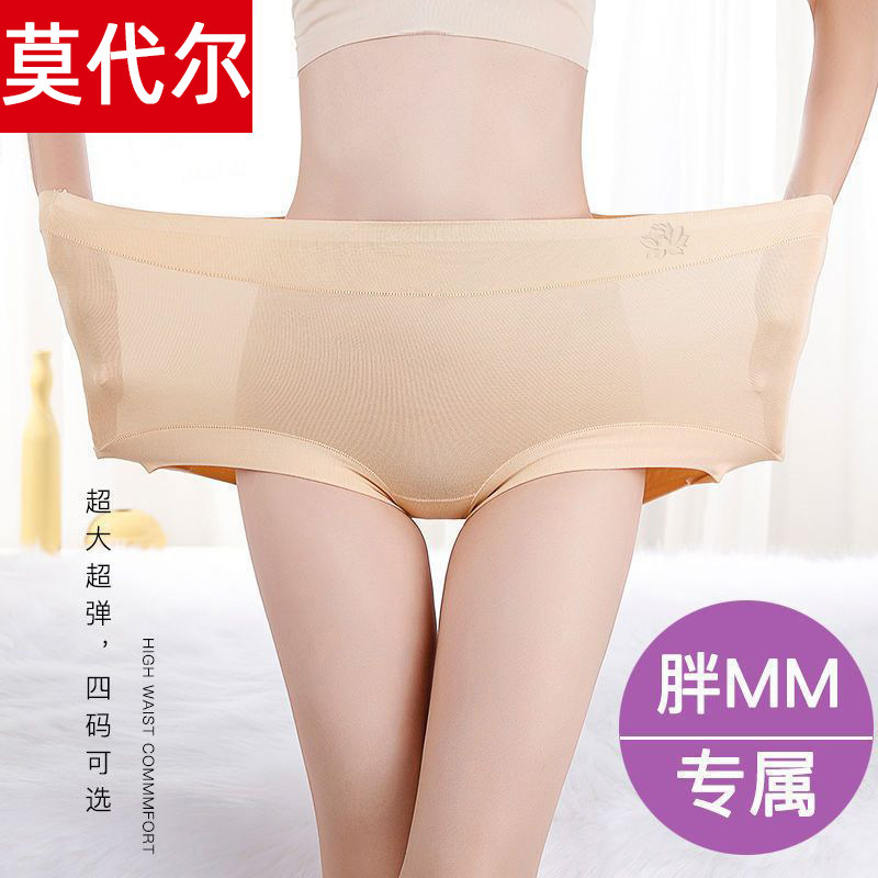大码纯棉裆内裤女胖MM高腰纯棉柔软女士莫代尔妈妈高腰三角短裤女