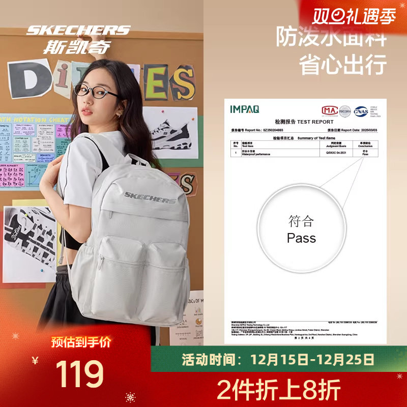 斯凯奇书包大容量电脑包运动旅行大学生双肩包女生初中高中生背包