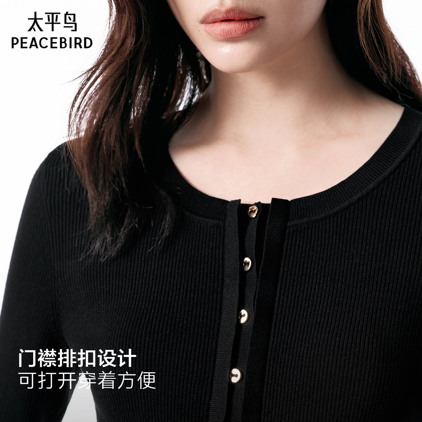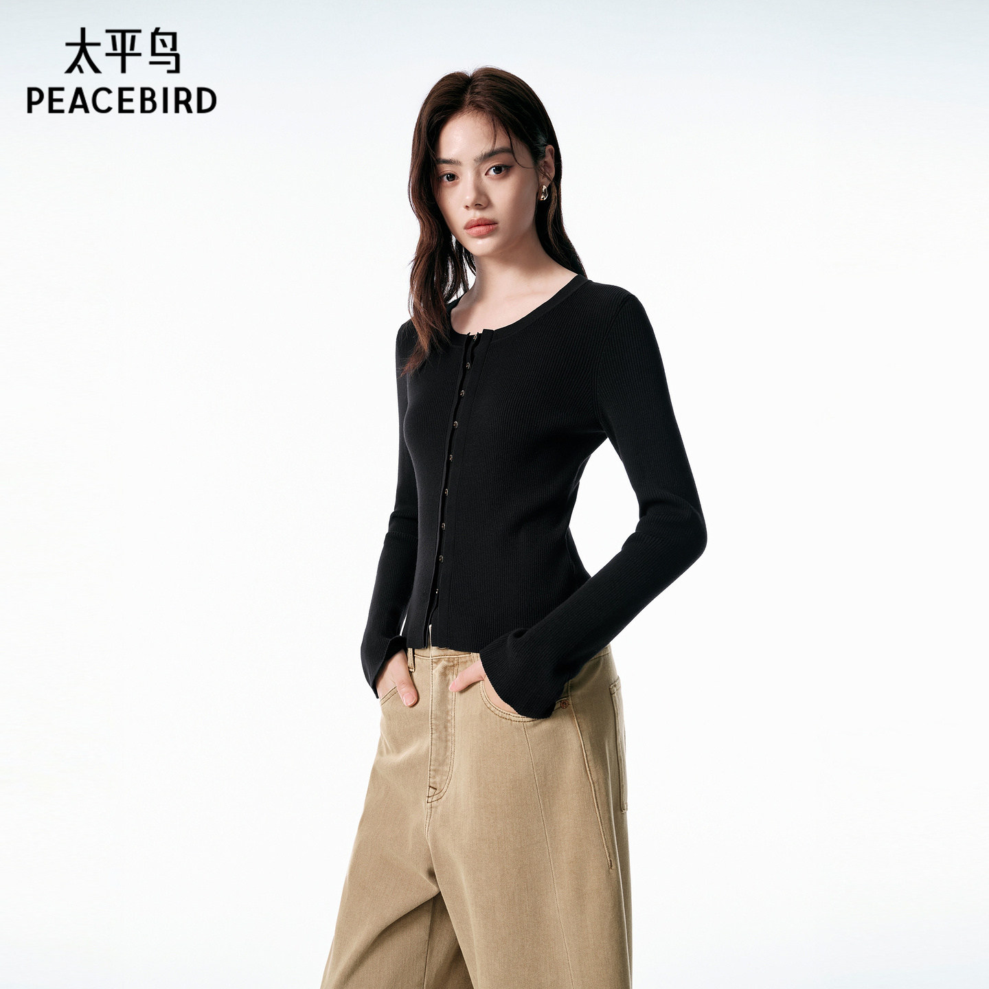 太平鸟铜氨包芯纱U领针织开衫26春新款竖条纹排扣修身显瘦上衣女