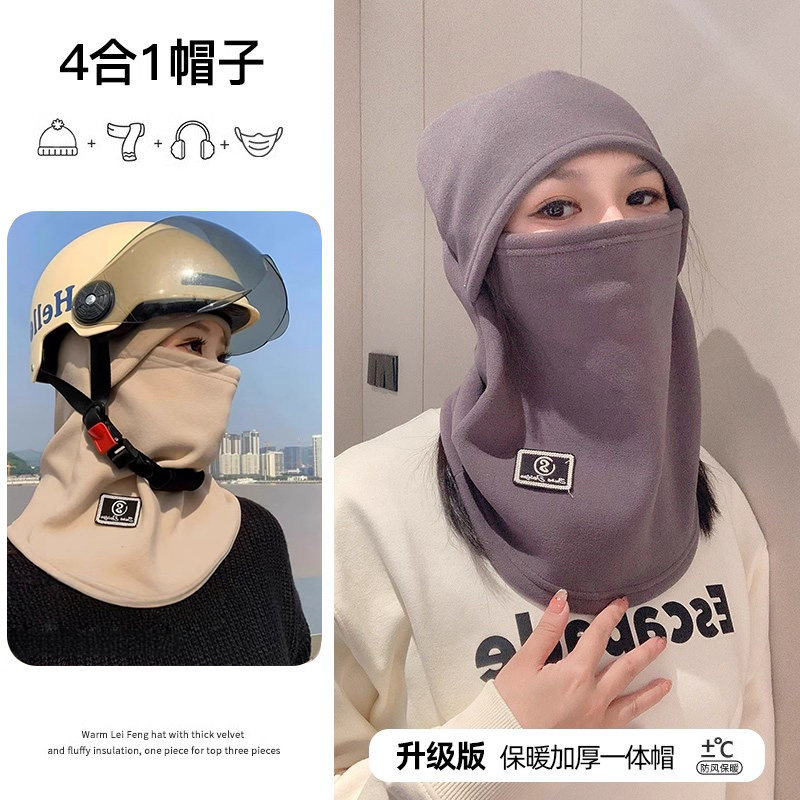 冬季加绒保暖骑行防风帽女电动车防寒面罩头盔内胆围巾一体男可戴