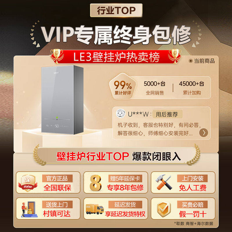 海尔燃气壁挂炉采暖热水两用家用天然气地暖全套设备取暖1级能效