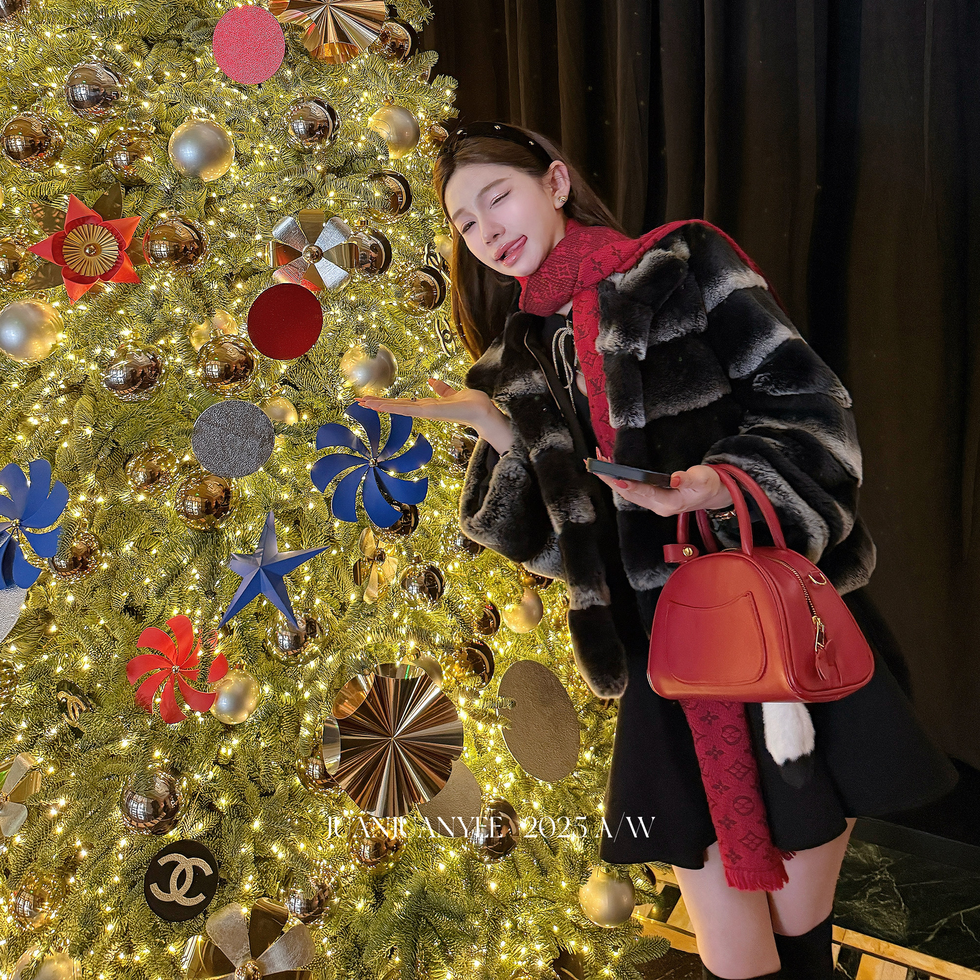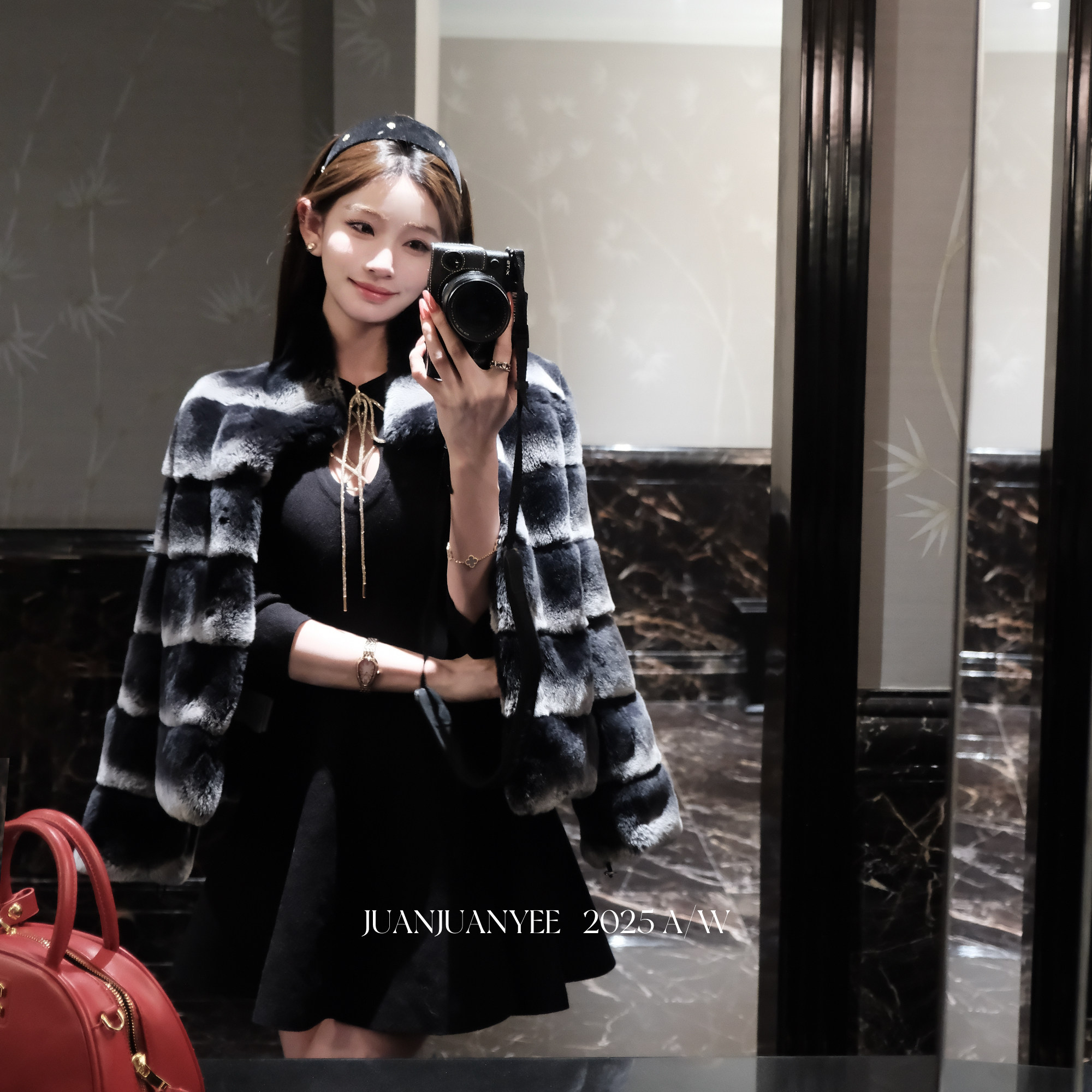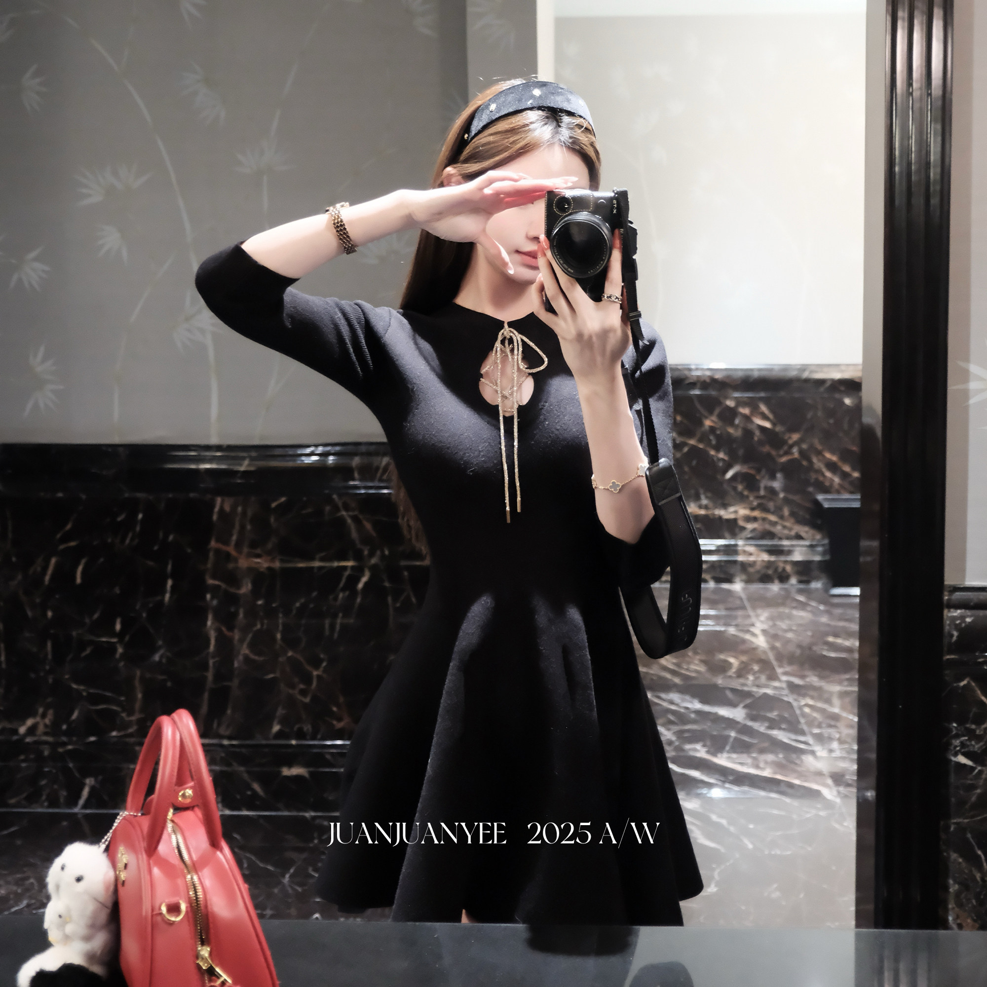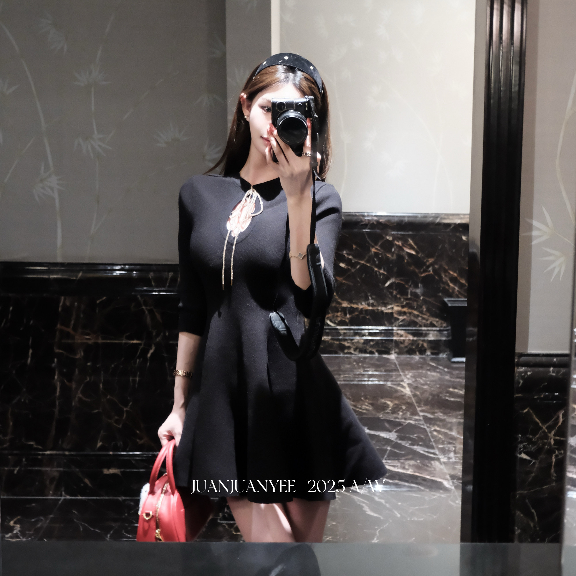 juanjuanyee【奥黛】绑带镂空连衣裙女气质千金风性感针织小黑裙