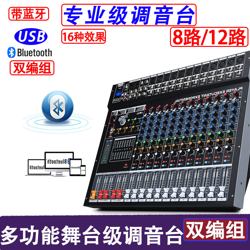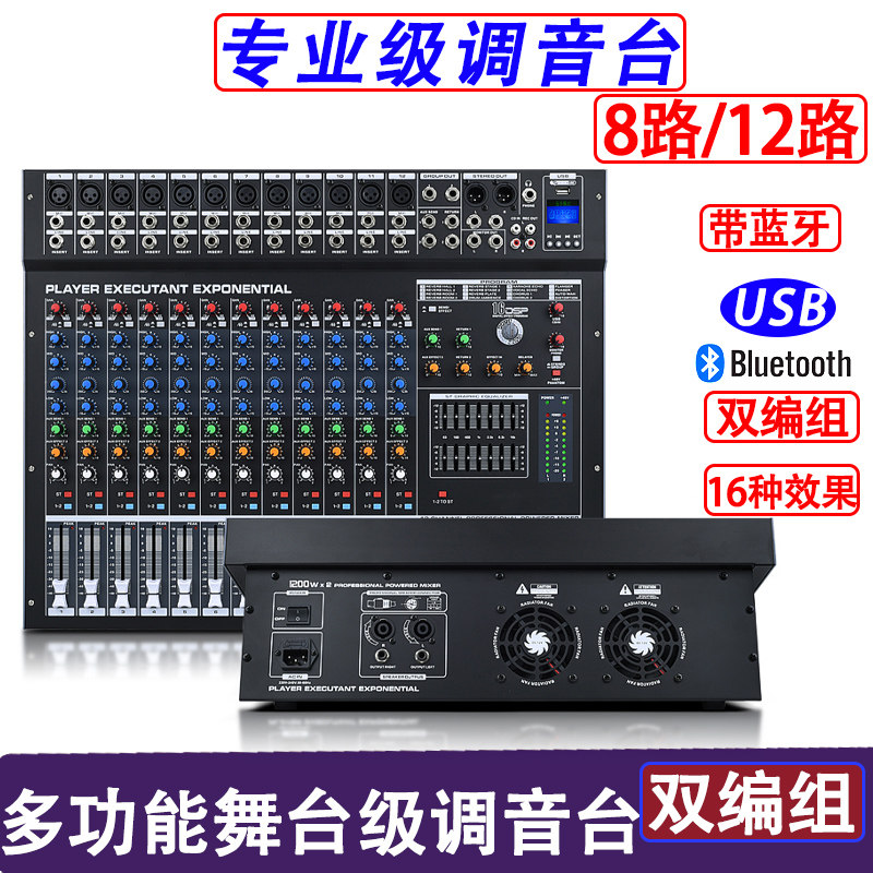 专业调音台带功放一体机舞台8/12路大功率演出婚庆防啸叫K歌调音