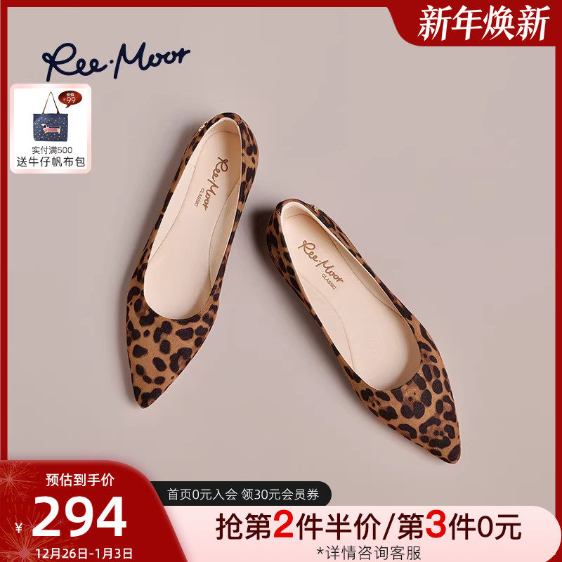REEMOOR睿慕2025秋季新款舒适软底平底鞋尖头时尚豹纹浅口单鞋女