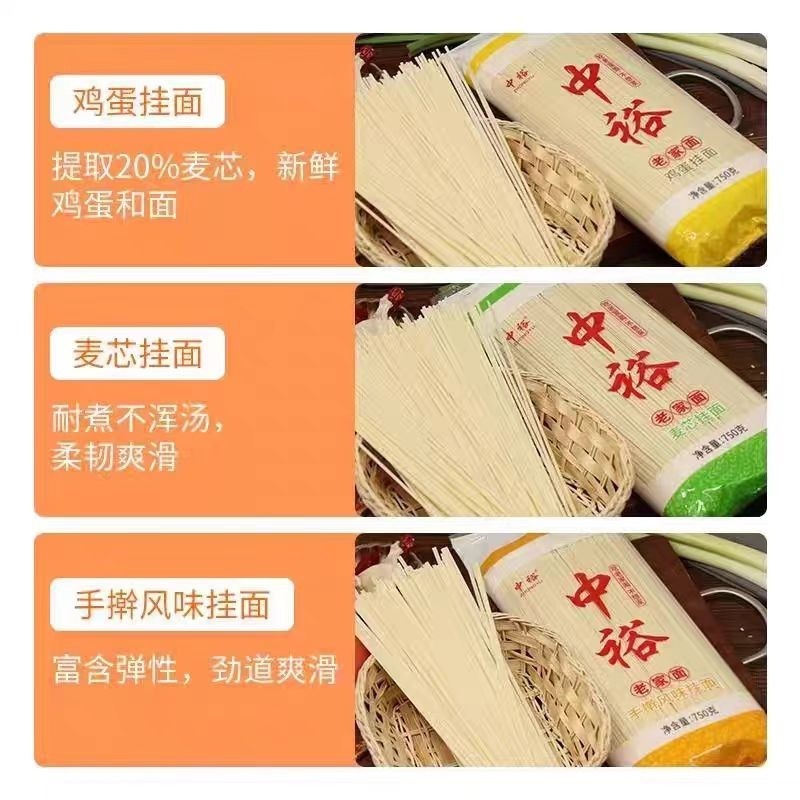 中裕麦芯挂面750g清水挂面手擀风味鸡蛋龙须挂面拌面早餐方便