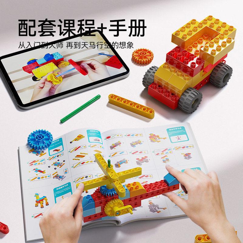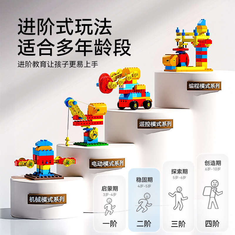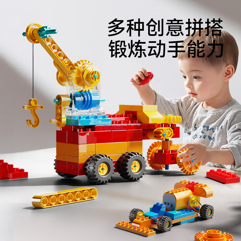儿童大颗粒积木电动齿轮机械科教3益智拼装玩具9656男孩6岁礼物