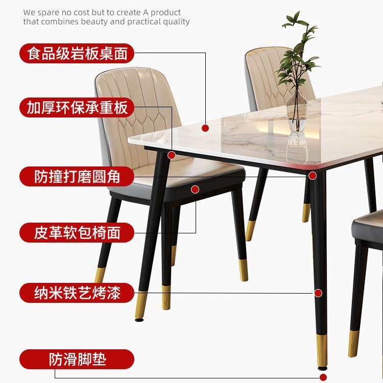 岩板餐桌家用轻奢现代简约小户型饭桌客厅长方形大理石餐桌椅组合