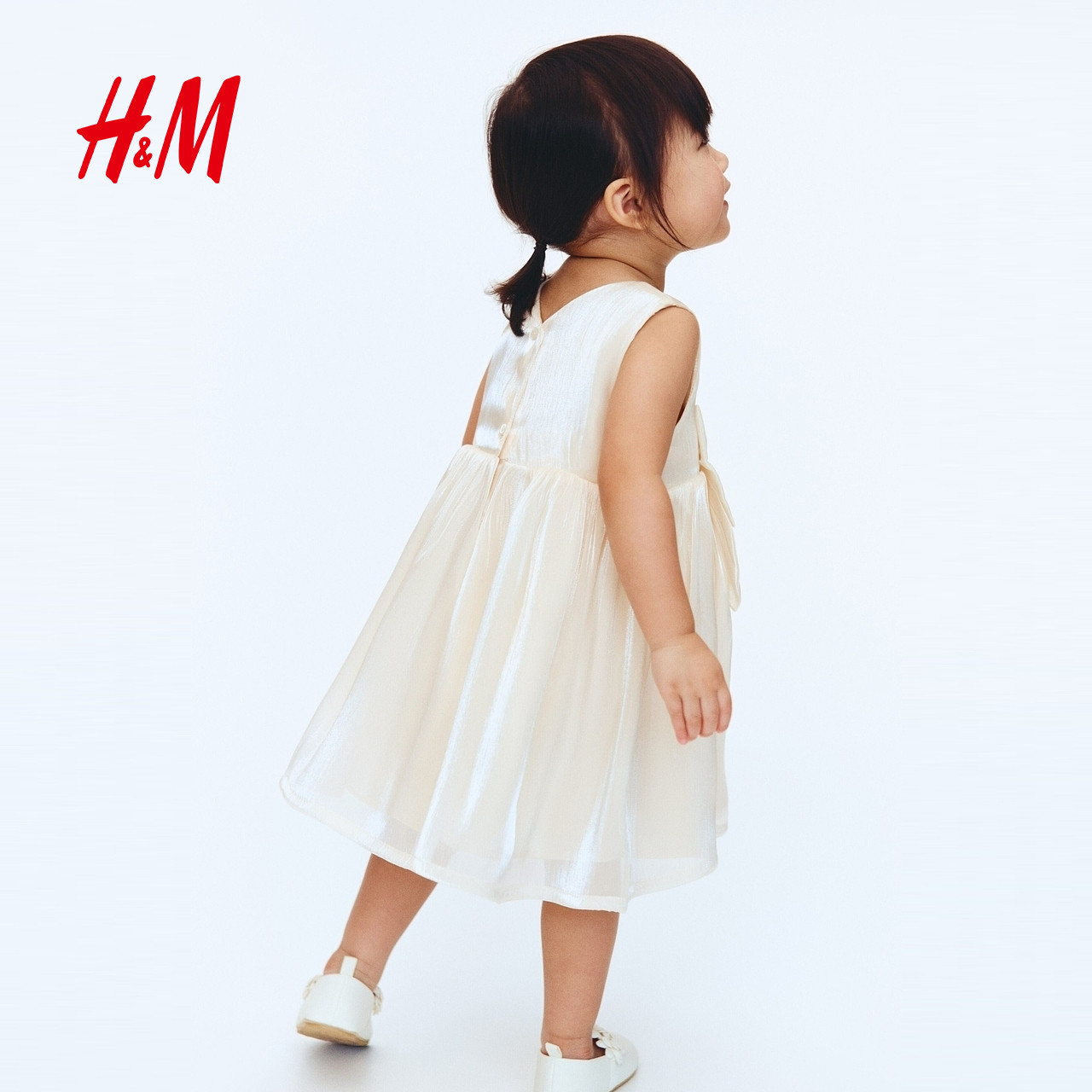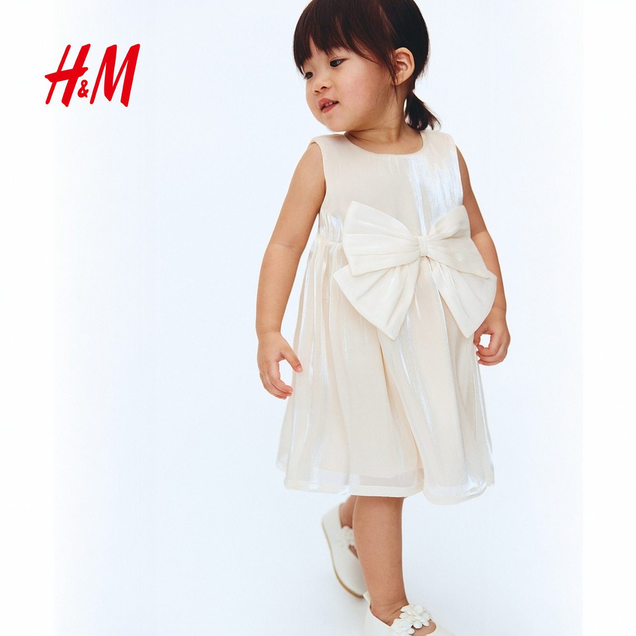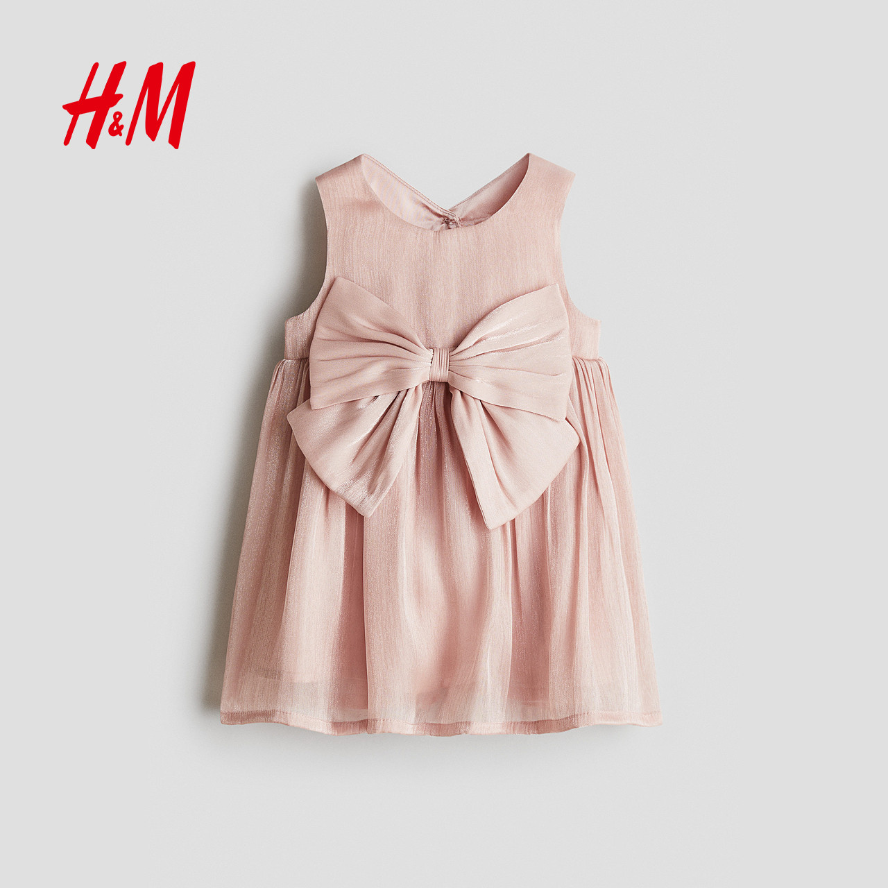HM童装女婴裙子春季蝴蝶结装饰欧根纱小礼服连衣裙公主裙1242636